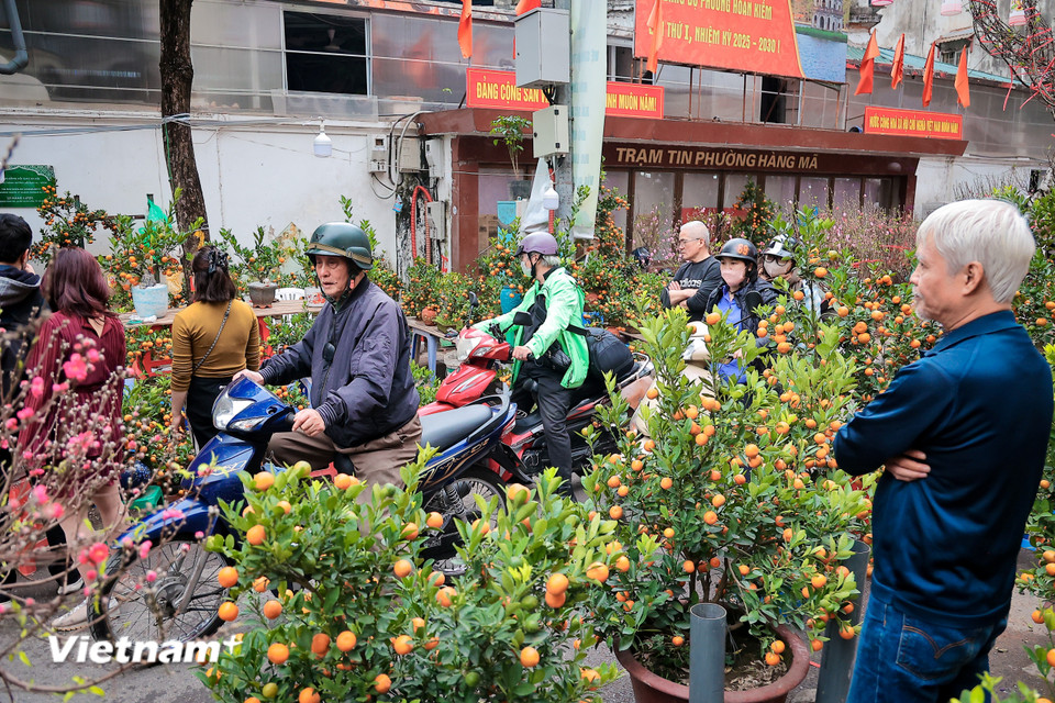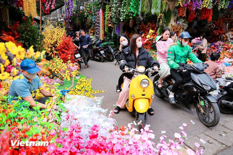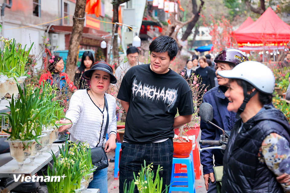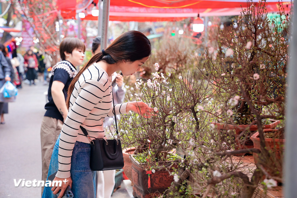 Điểm nhấn lớn nhất của không gian Tết Hà Thành vẫn là chợ hoa Hàng Lược – phiên chợ hoa cổ nhất Thủ đô, nơi lưu giữ hồn cốt Tết xưa giữa lòng đô thị hiện đại. (Ảnh: Hoài Nam/Vietnam+)