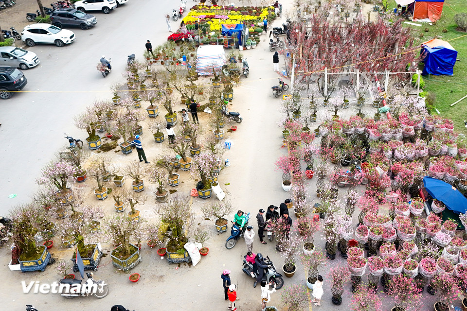 Các loại cây cảnh như đào, quất, mai với đa dạng mẫu mã và chủng loại được trưng bày đợi chủ đón về chơi Tết. (Ảnh: Hoài Nam/Vietnam+)