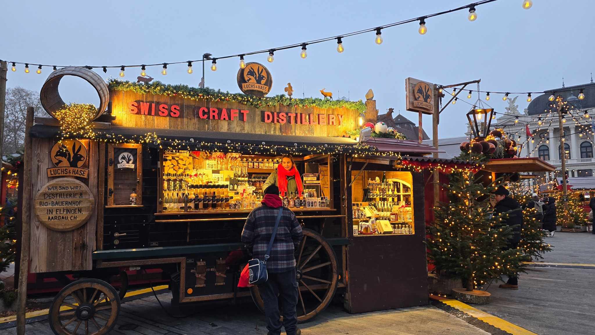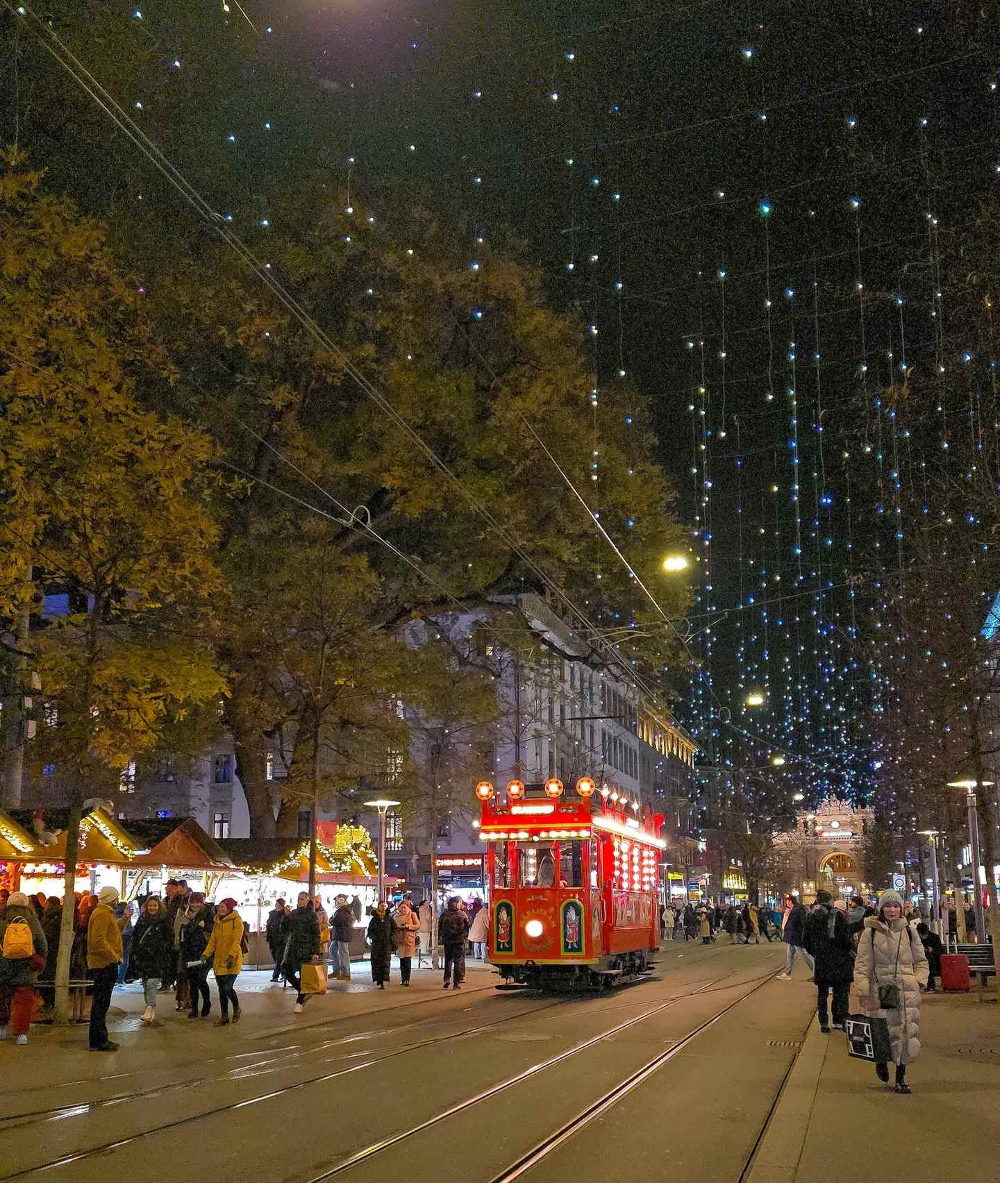 Tại Zurich mùa Giáng sinh, du khách có thể ghé chợ Christkindlimarkt trong ga trung tâm với nhiều gian hàng thủ công và ẩm thực mùa đông; Secheläutenplatz với chợ ngoài trời rực sáng và khu vực thưởng thức fondue; và phố cổ Old Town yên tĩnh với những lối đá cùng các quầy hàng thủ công truyền thống. Ảnh: Nguyễn Tất Thịnh