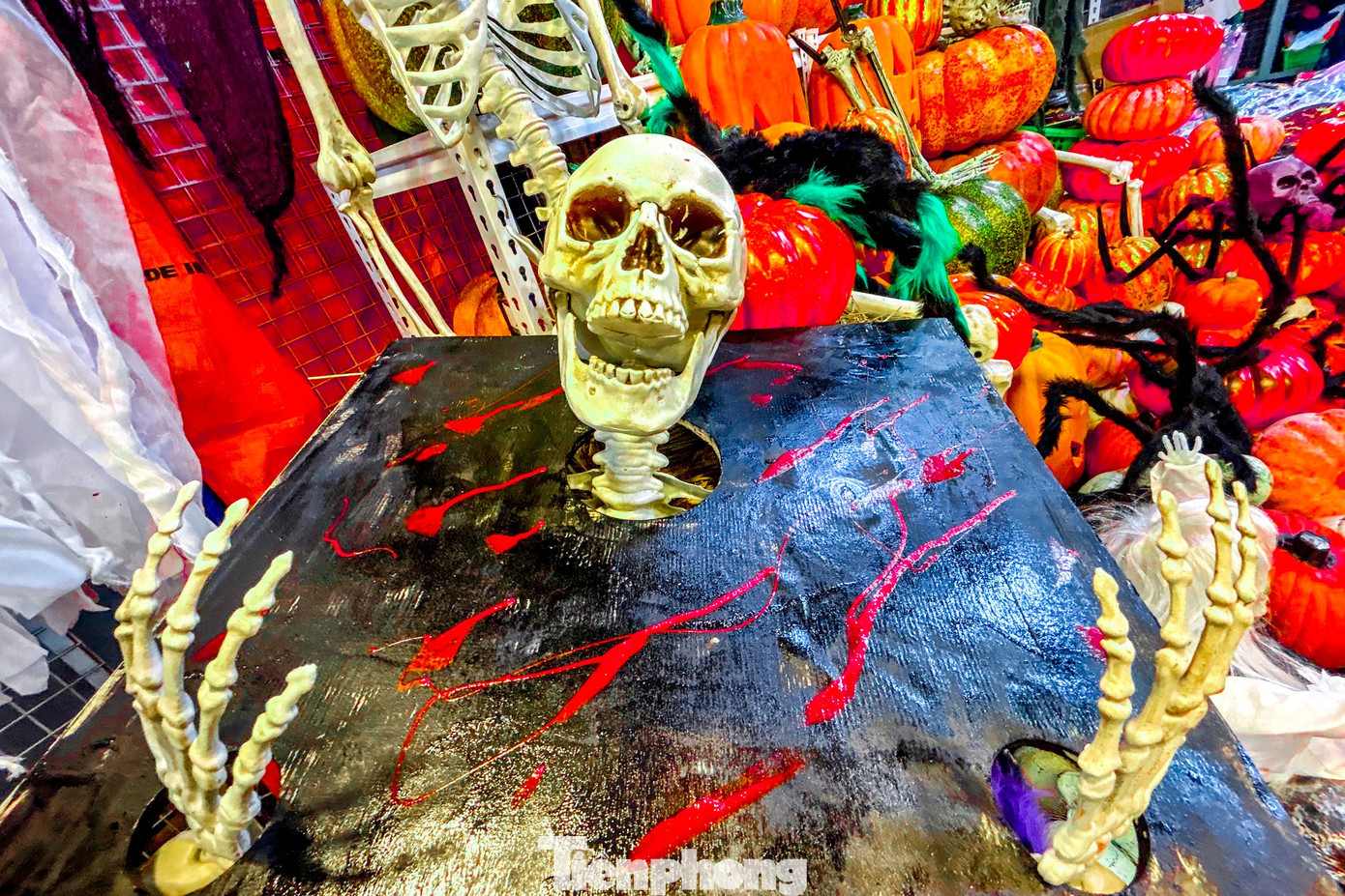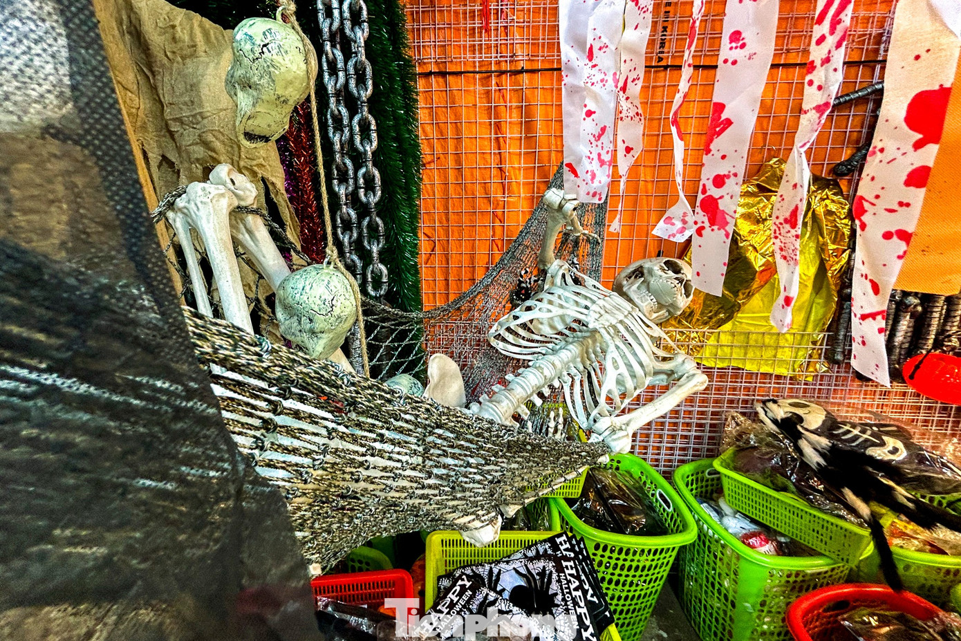 Các cửa hàng trên đường Hải Thượng Lãn Ông, Nguyễn Thị Minh Khai , Nguyễn Đình Chiểu... bày bán kín đồ trang trí Halloween như đèn bí ngô, mạng nhện, đầu lâu, mặt nạ, dây phát sáng... Trong đó, bí ngô nhựa được ưa chuộng nhất, giá 25.000–100.000 đồng, dễ trang trí bàn làm việc hoặc góc check-in.