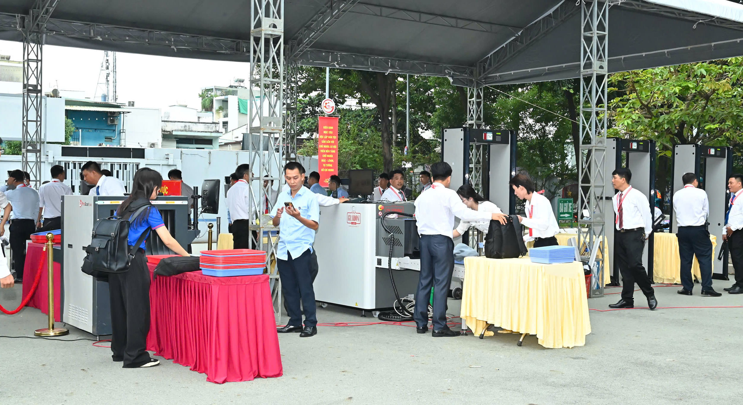 Lực lượng an ninh làm nhiệm vụ tại khu vực kiểm tra an ninh