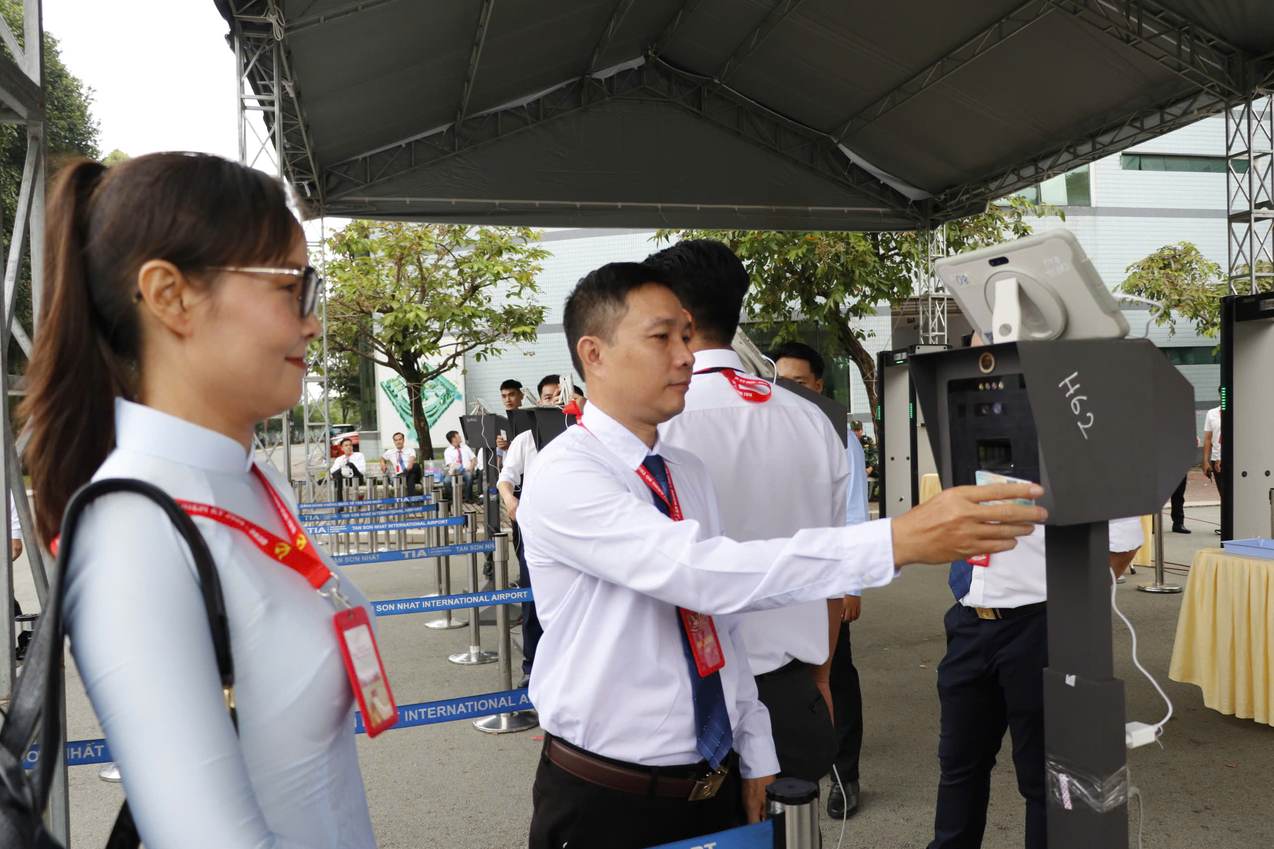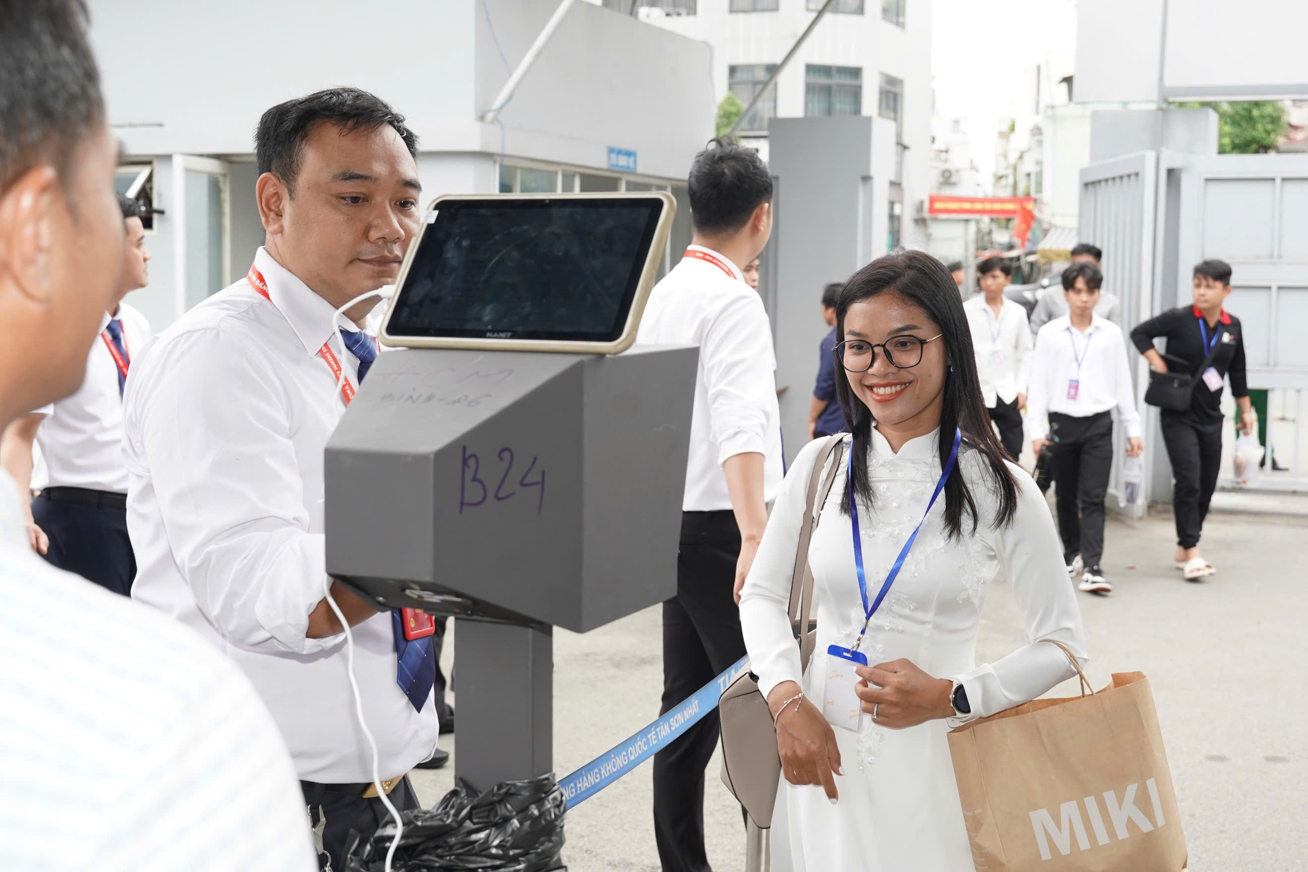 Đại hội lần này được quán triệt là đại hội chuyển đổi số toàn diện, vì vậy ngay từ khu vực sảnh vào kiểm tra an ninh, các thiết bị công nghệ hỗ trợ kiểm soát, điểm danh đại biểu luôn sẵn sàng. Nhân viên kỹ thuật vẫn túc trực để đảm bảo các thiết bị hoạt động ổn định cũng như xử lý tình huống ngay khi gặp trục trặc.