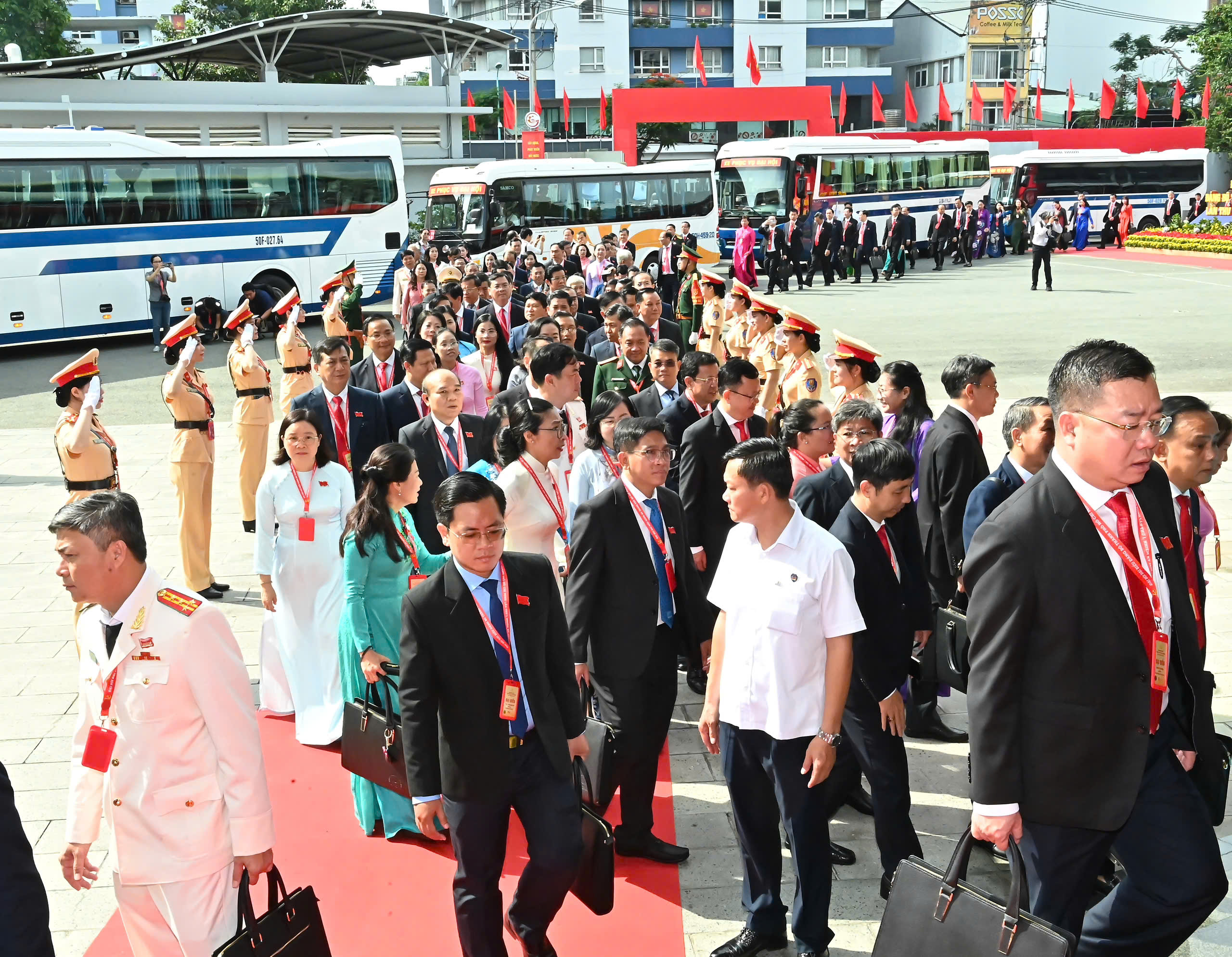 Các đại biểu vào hội trường để dự phiên trù bị Đại hội đại biểu Đảng bộ TPHCM lần thứ nhất