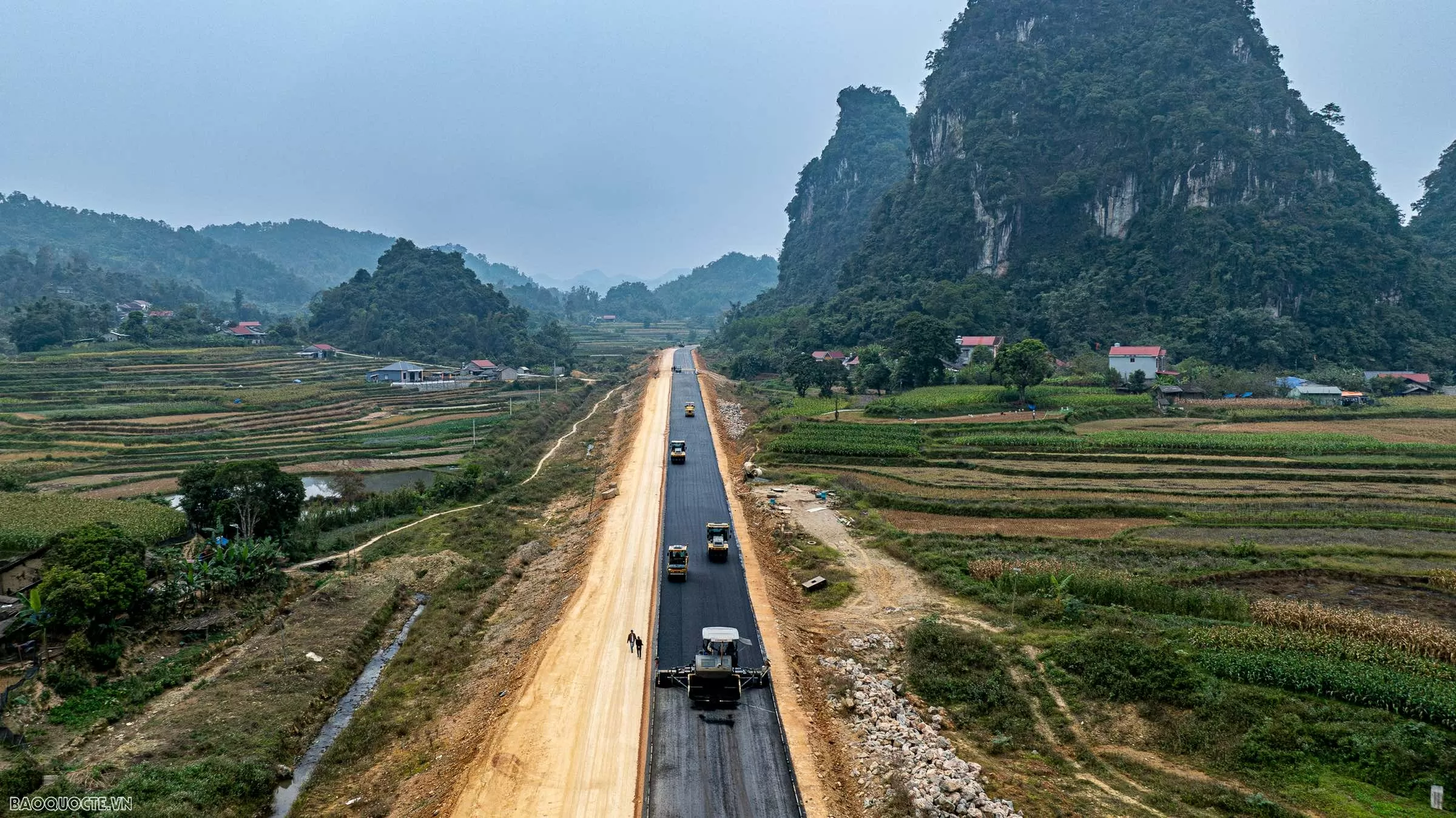 Khi hoàn thành, dự án Đồng Đăng-Trà Lĩnh sẽ kết nối với hai dự án cao tốc Hữu Nghị - Chi Lăng và Bắc Giang-Lạng Sơn để hình thành nên một trục cao tốc đối ngoại huyết mạch, kết nối giao thương hàng hóa từ Việt Nam sang các nước Trung Quốc và châu Âu, góp phần nâng cao năng lực cạnh tranh của nền kinh tế, tạo động lực phát triển kinh tế - xã hội mới cho vùng Đông Bắc. (Ảnh: Nguyễn Hồng)