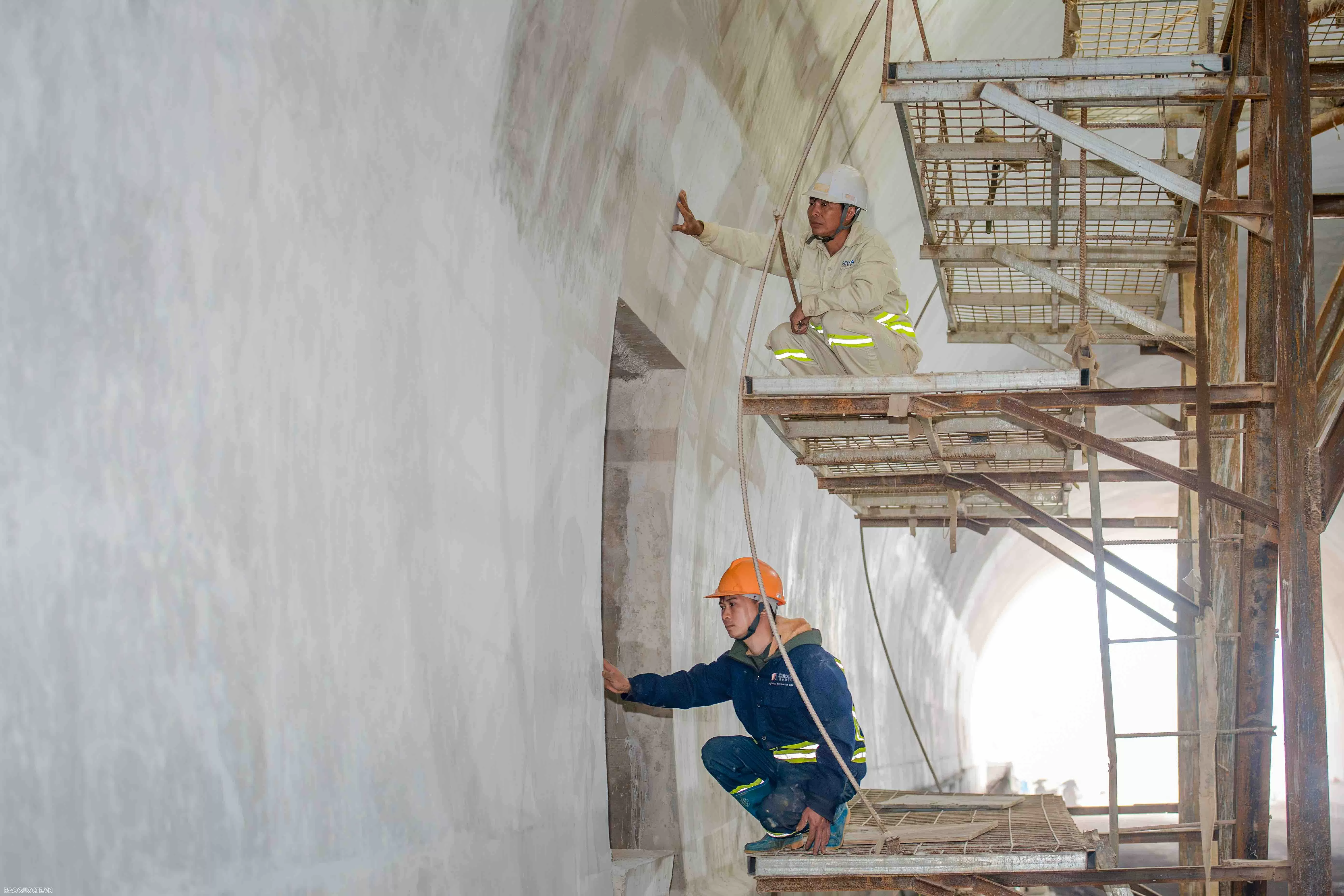 Hầm Thất Khê (xã Tràng Định, tỉnh Lạng Sơn) dài khoảng 200m, nằm trên địa bàn xã Tràng Định, tỉnh Lạng Sơn. Hiện công nhân đang thi công hạng mục bệ phần áp bên ngoài vỏ hầm và vệ sinh ống hầm. (Ảnh: Nguyễn Hồng)