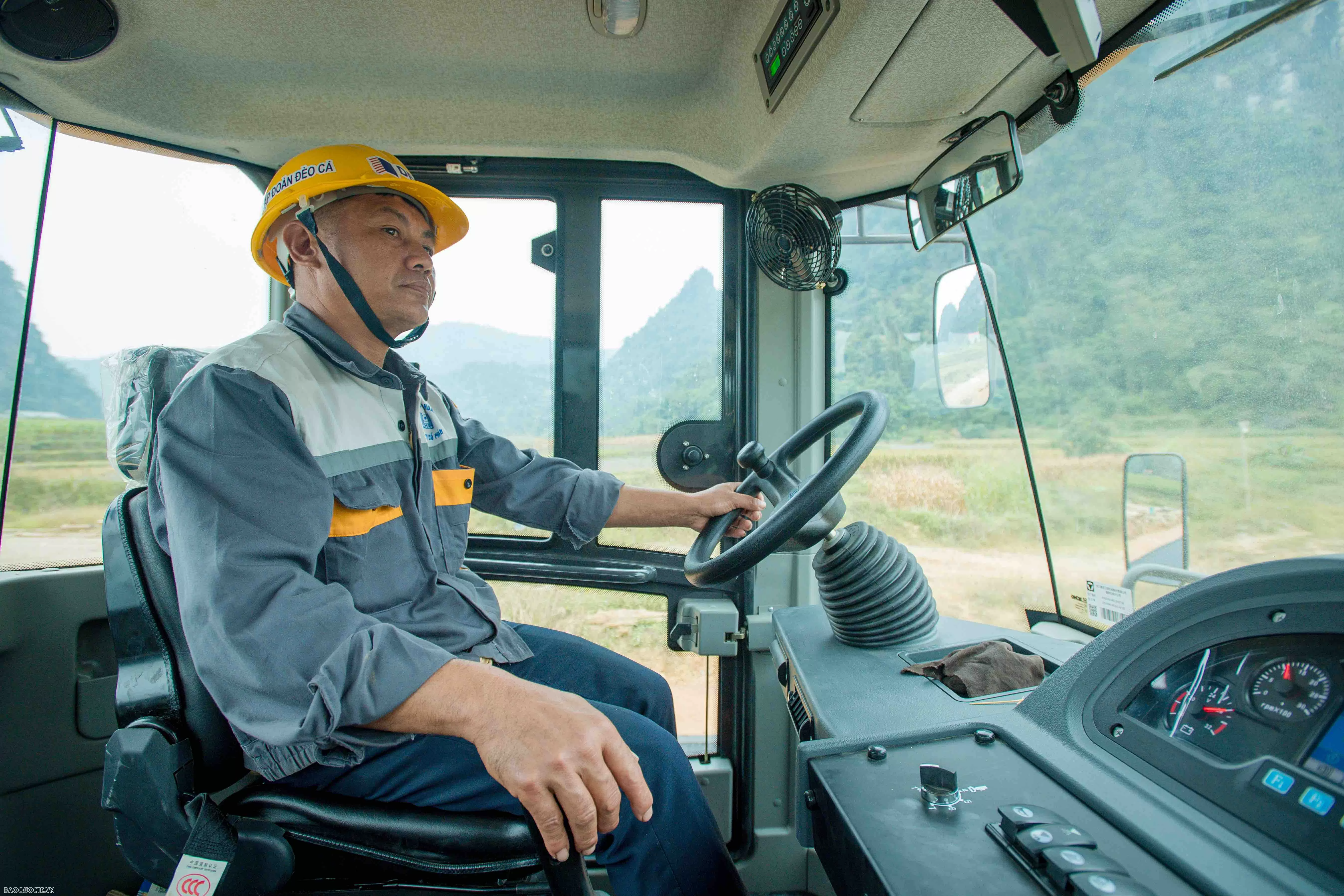 Anh Trần Văn Công, tài xế đang thi công trên công trường Đồng Đăng – Trà Lĩnh cho biết, bản thân và các đồng nghiệp không ngần ngại làm việc xuyên đêm, xuyên lễ Tết để đẩy nhanh sản lượng. (Ảnh: Nguyễn Hồng)