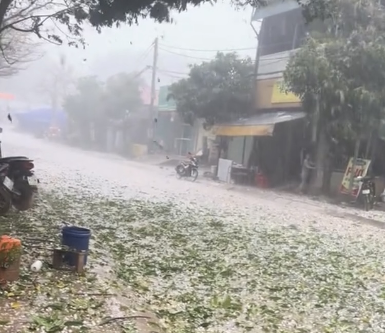 Mưa đá ở tỉnh Cao Bằng khi không khí lạnh yếu tràn xuống. Ảnh: BEAT CAO BẰNG