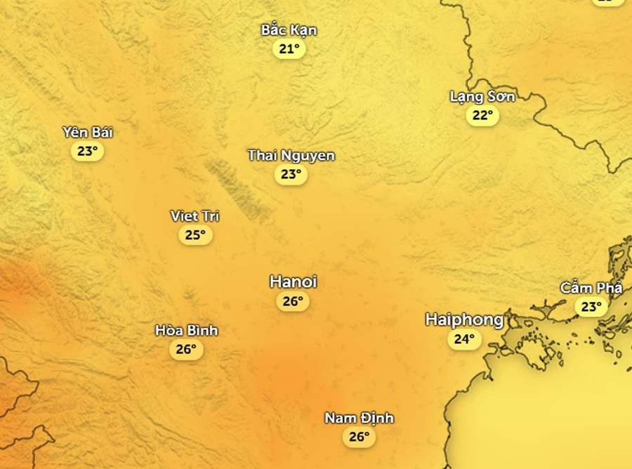 Chiều nay, 5/2, nhiệt độ cảm nhận ở Hà Nội lên mức trên dưới 25oC, đã là mát. Cả ngày mai, 6/2, trời ấm hơn và ẩm hơn một chút so với hôm nay (tính theo các thời điểm tương ứng), để rồi sau đó không khí lạnh sẽ về.