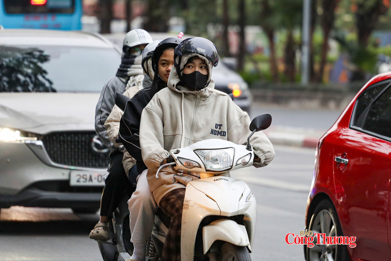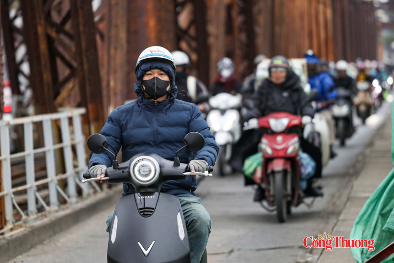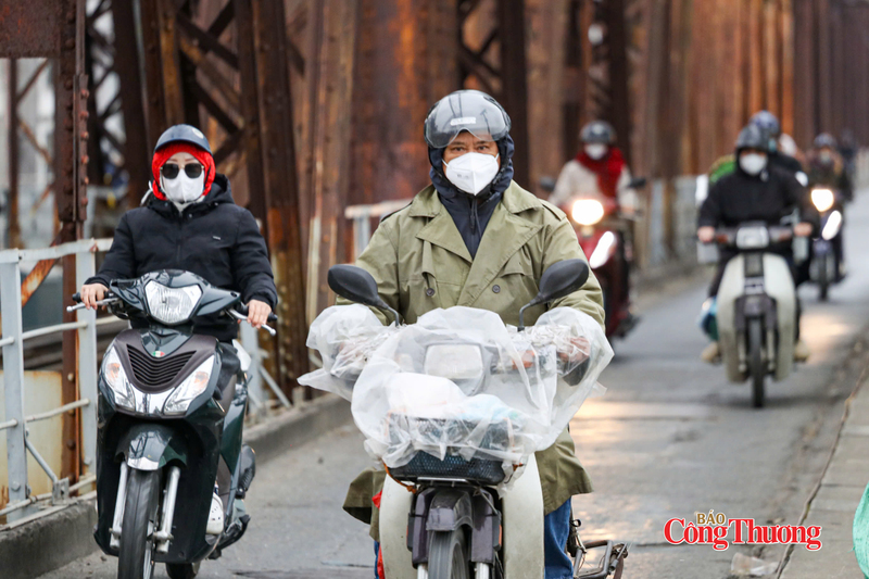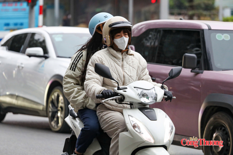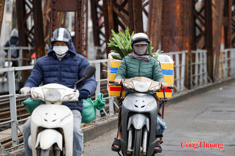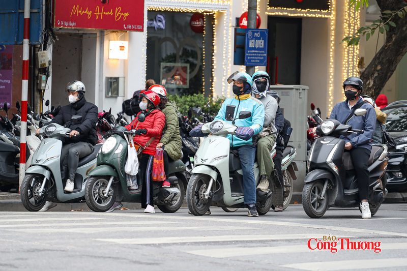 Không khí lạnh tràn về khiến việc đi lại của người dân gặp nhiều khó khăn. Ảnh: Thái Mạnh