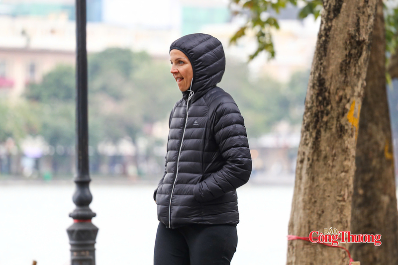 Người nước ngoài cũng co ro trong đợt lạnh tại Thủ đô. Ảnh: Thái Mạnh