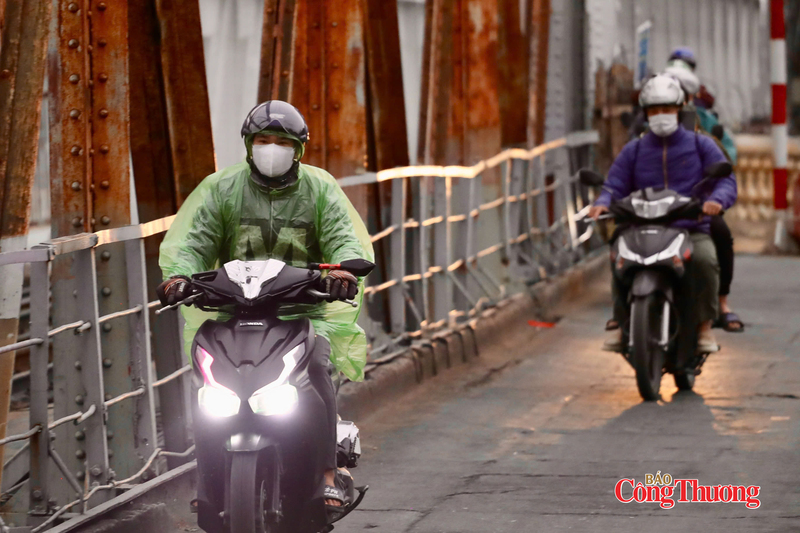 Giữa cái lạnh “cắt da cắt thịt”, áo mưa trở thành lá chắn giúp người dân tránh những cơn gió buốt. Ảnh: Thái Mạnh