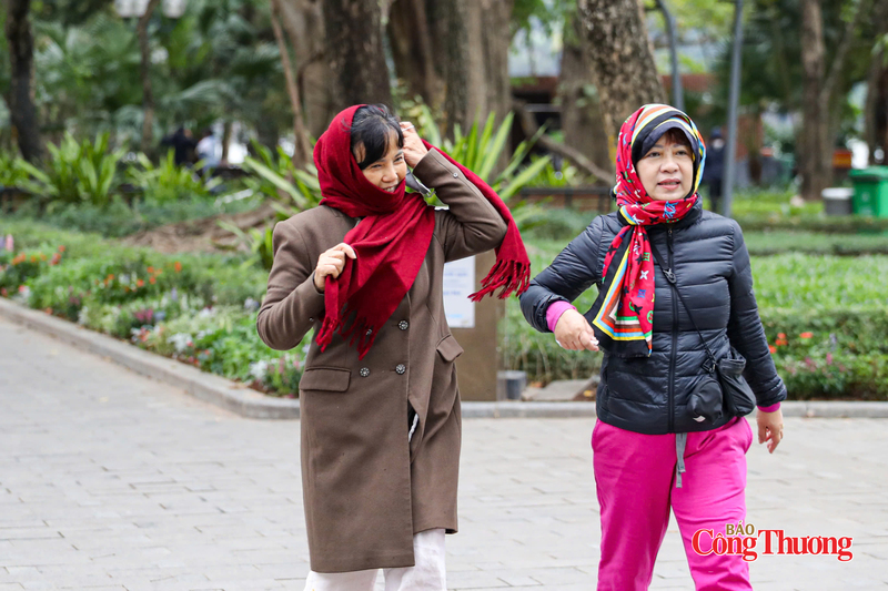 Nhiều người bất ngờ với không khí lạnh giảm sâu, co ro khi hoạt động ngoài trời. Ảnh: Thái Mạnh