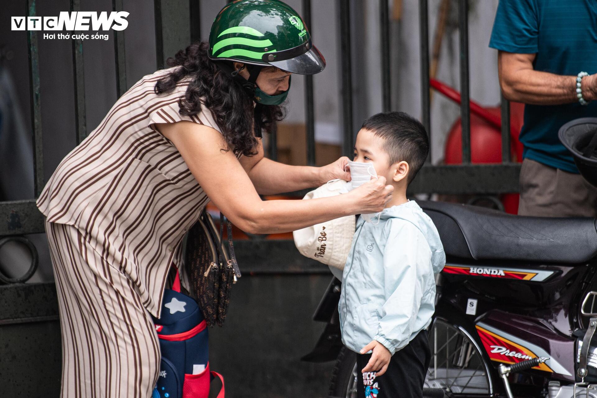 Cha mẹ quấn khăn, kéo khóa áo kín cổ cho con trước khi ra khỏi nhà.
