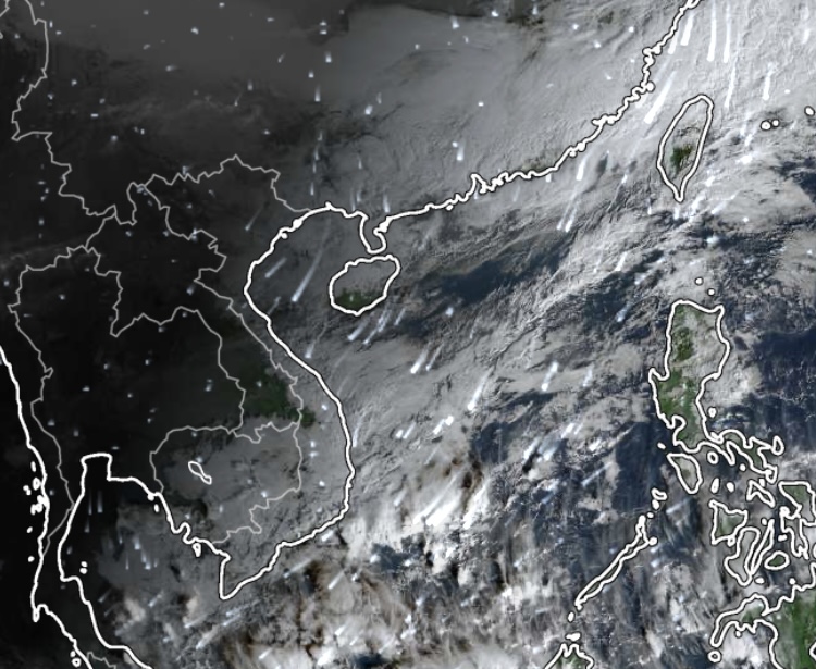 Không khí lạnh đang tiếp tục lan tỏa sâu xuống Bắc bộ và Trung bộ, sáng 25-12. Nguồn: Z.E