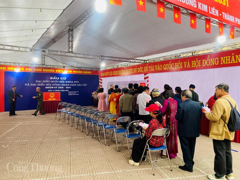 Không khí trang trọng tại Khu vực bỏ phiếu số 23, phường Kim Liên.