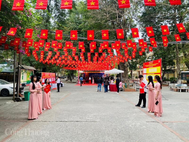 Cờ hoa, băng rôn rực rỡ cùng dòng người nô nức đi bỏ phiếu đã tạo nên không khí phấn khởi tại phường Kim Liên trong ngày hội bầu cử.