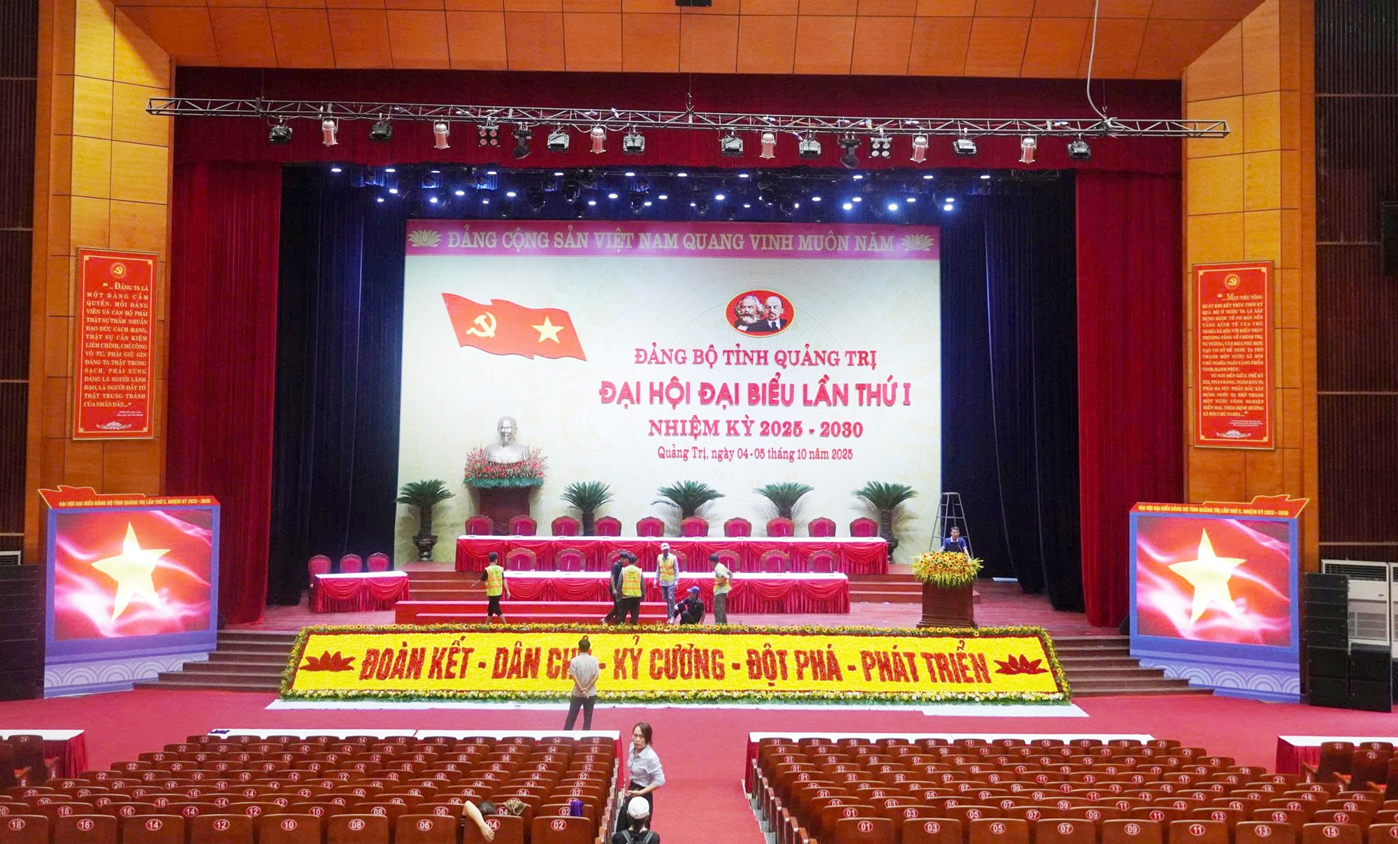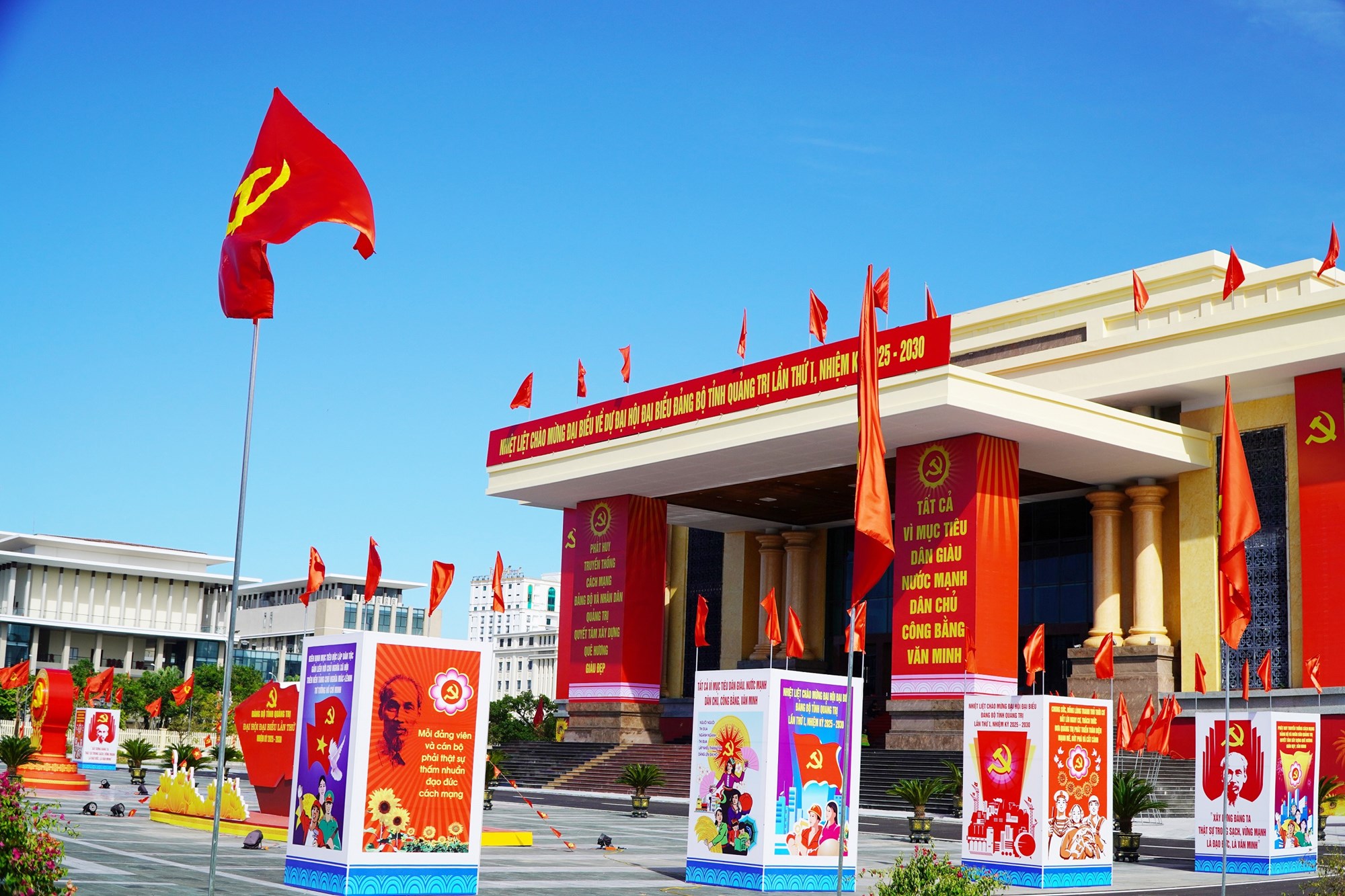 Tại Trung tâm Văn hóa và Điện ảnh tỉnh Quảng Trị – nơi diễn ra Đại hội và trên các trục đường ở phường Đồng Hới đã rực rỡ cờ hoa… tạo không khí phấn khởi chào mừng ngày hội lớn - Đại hội đại biểu tỉnh Quảng Trị lần thứ nhất, nhiệm kỳ 2025-2030.