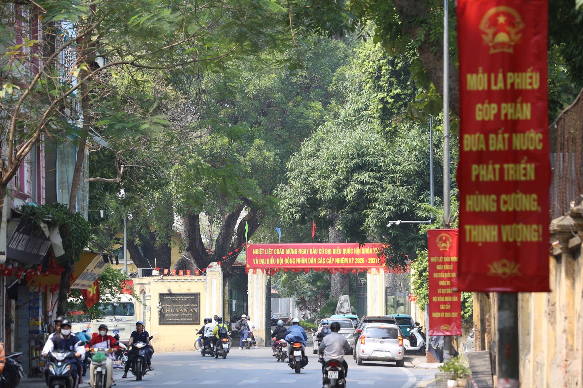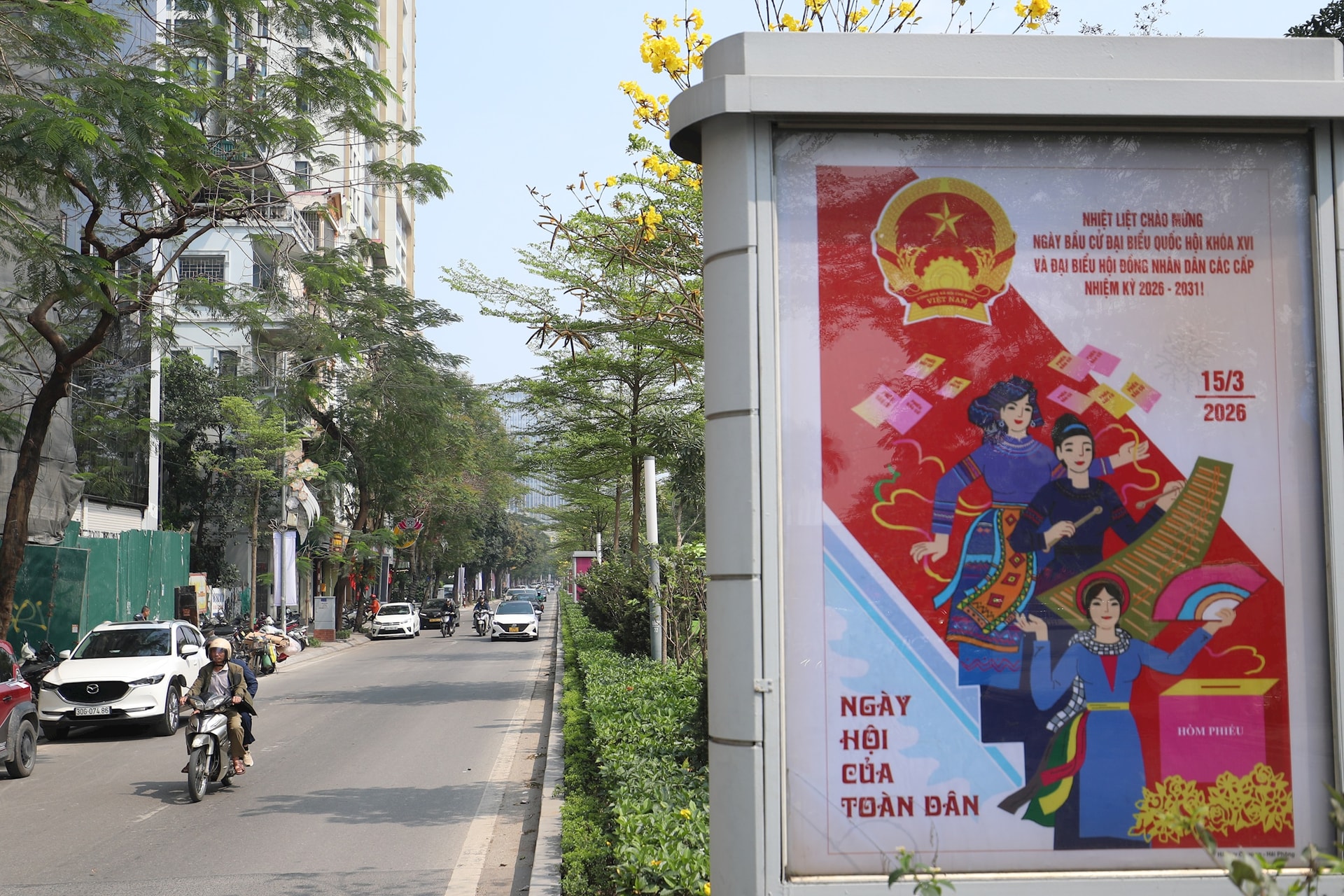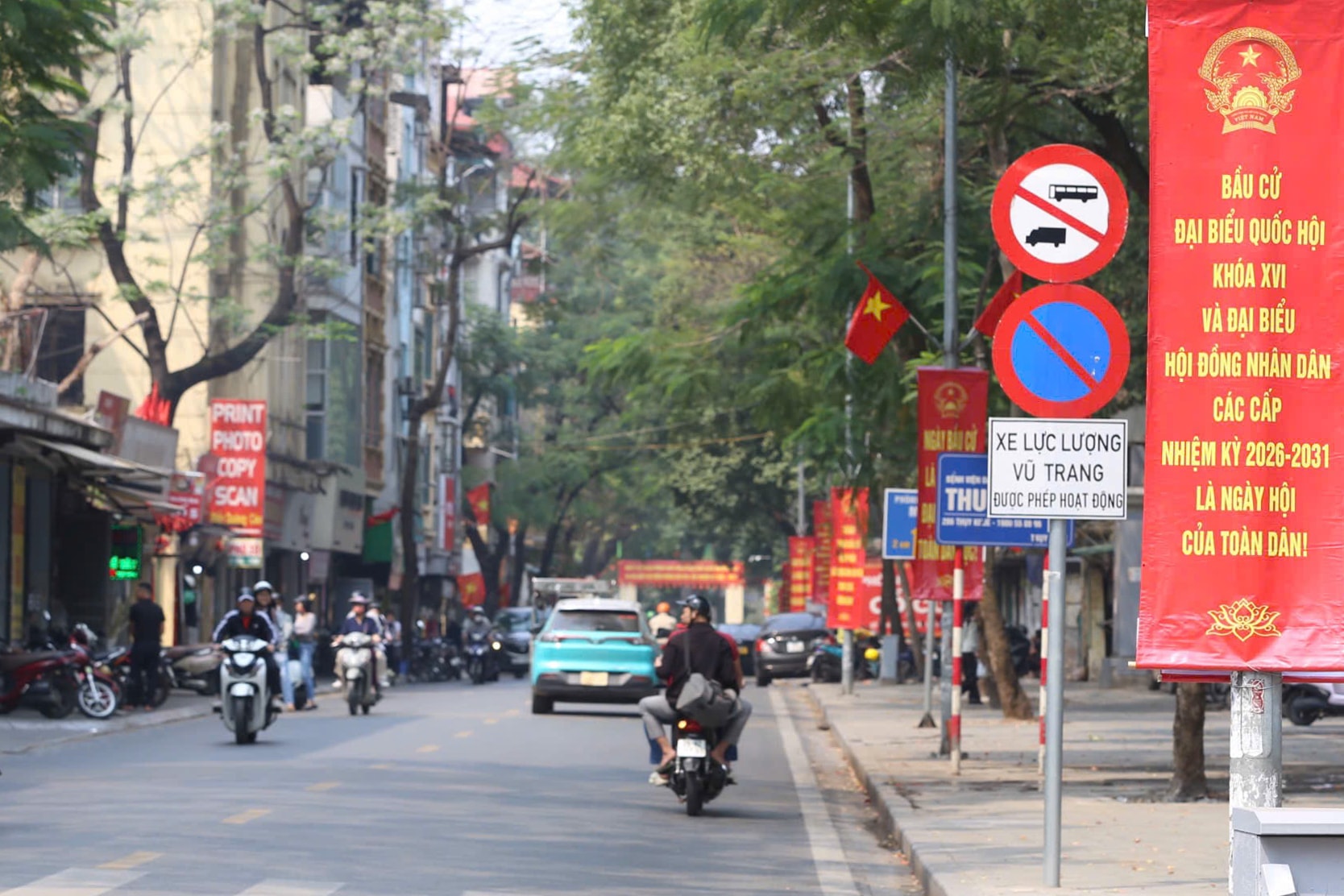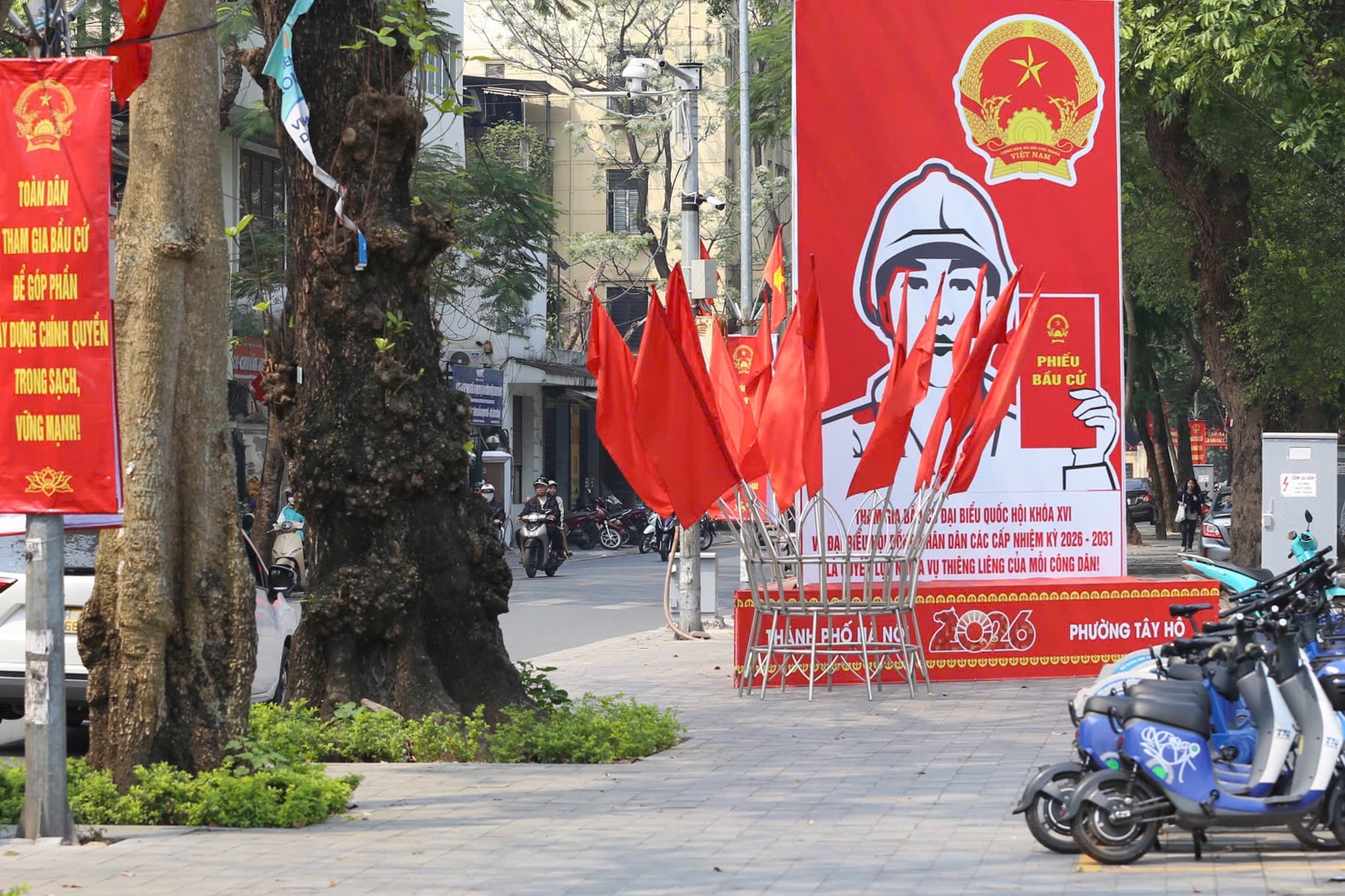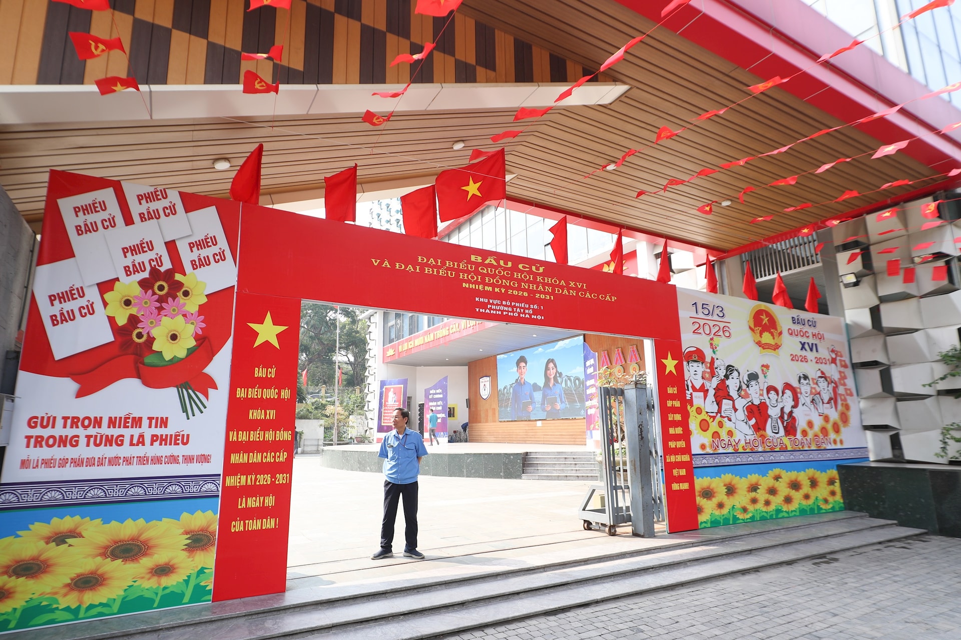 Không khí phấn khởi lan tỏa khắp nơi, thể hiện sự chuẩn bị chu đáo và niềm tin của người dân hướng về ngày hội non sông. Ảnh: Ngọc Tú