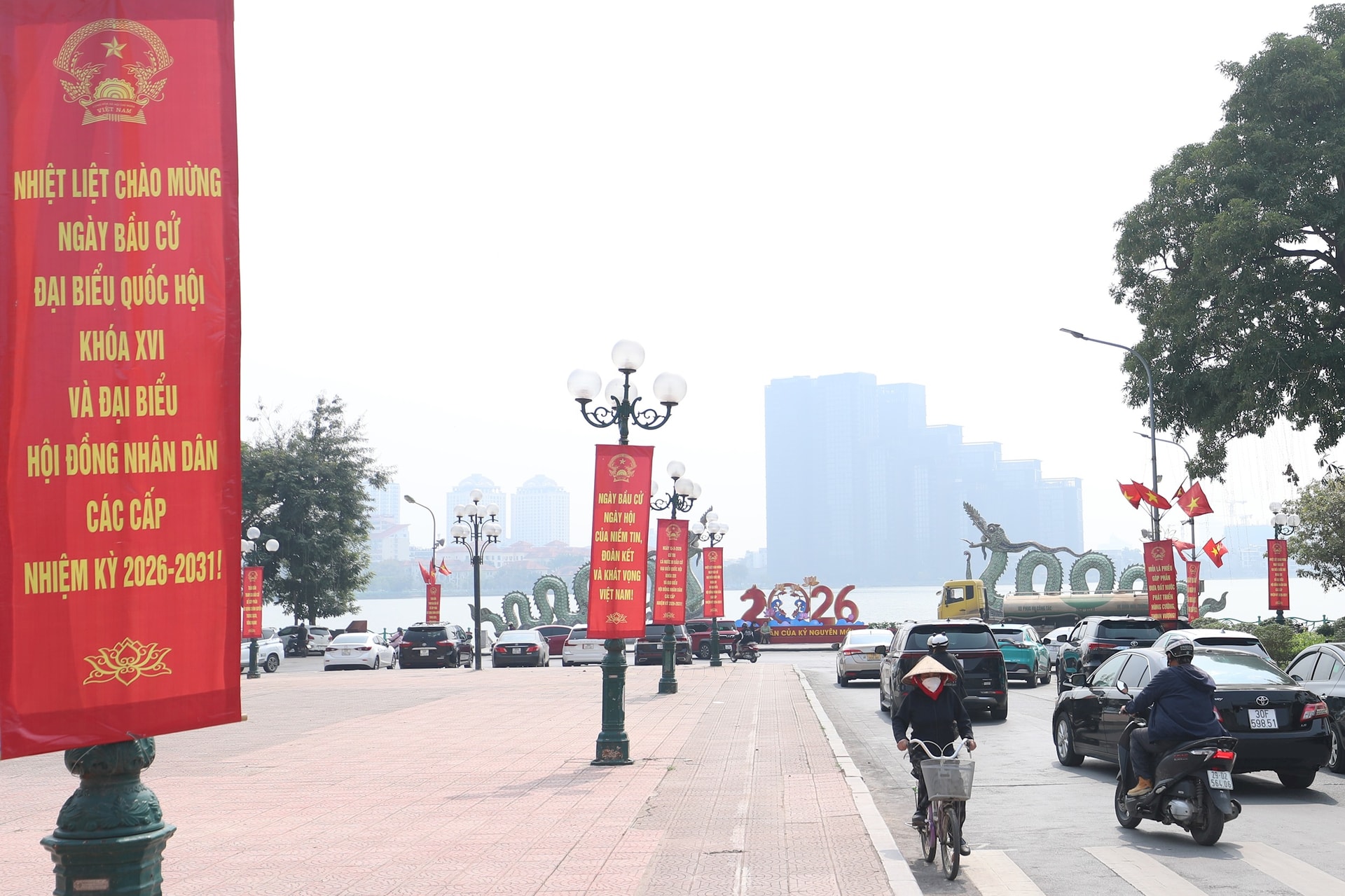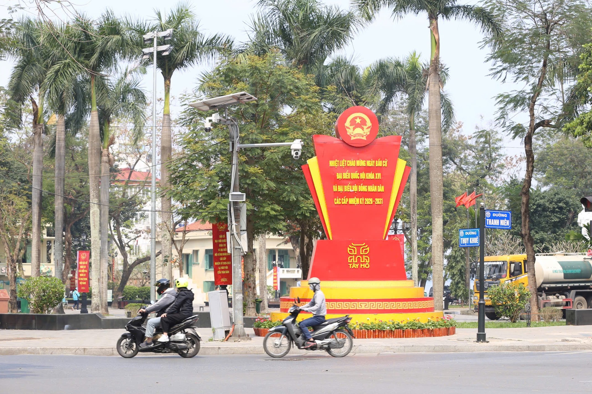 Việc trang trí tạo điểm nhấn sinh động cho phố phường trước ngày bầu cử, đồng thời khẳng định tầm quan trọng của sự kiện chính trị trọng đại này. Ảnh: Ngọc Tú
