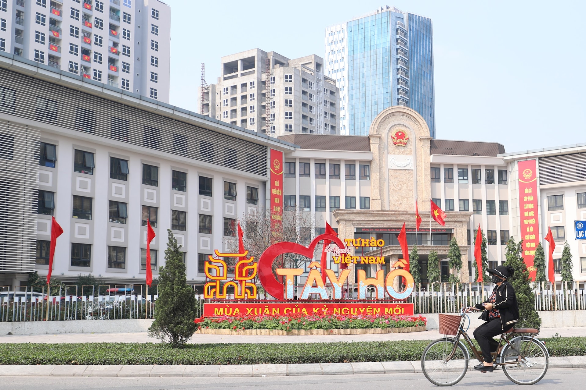 Hình ảnh trước trụ sở Đảng ủy - HĐND - UBND - Ủy ban MTTQ Việt Nam phường Tây Hồ. Ảnh: Ngọc Tú