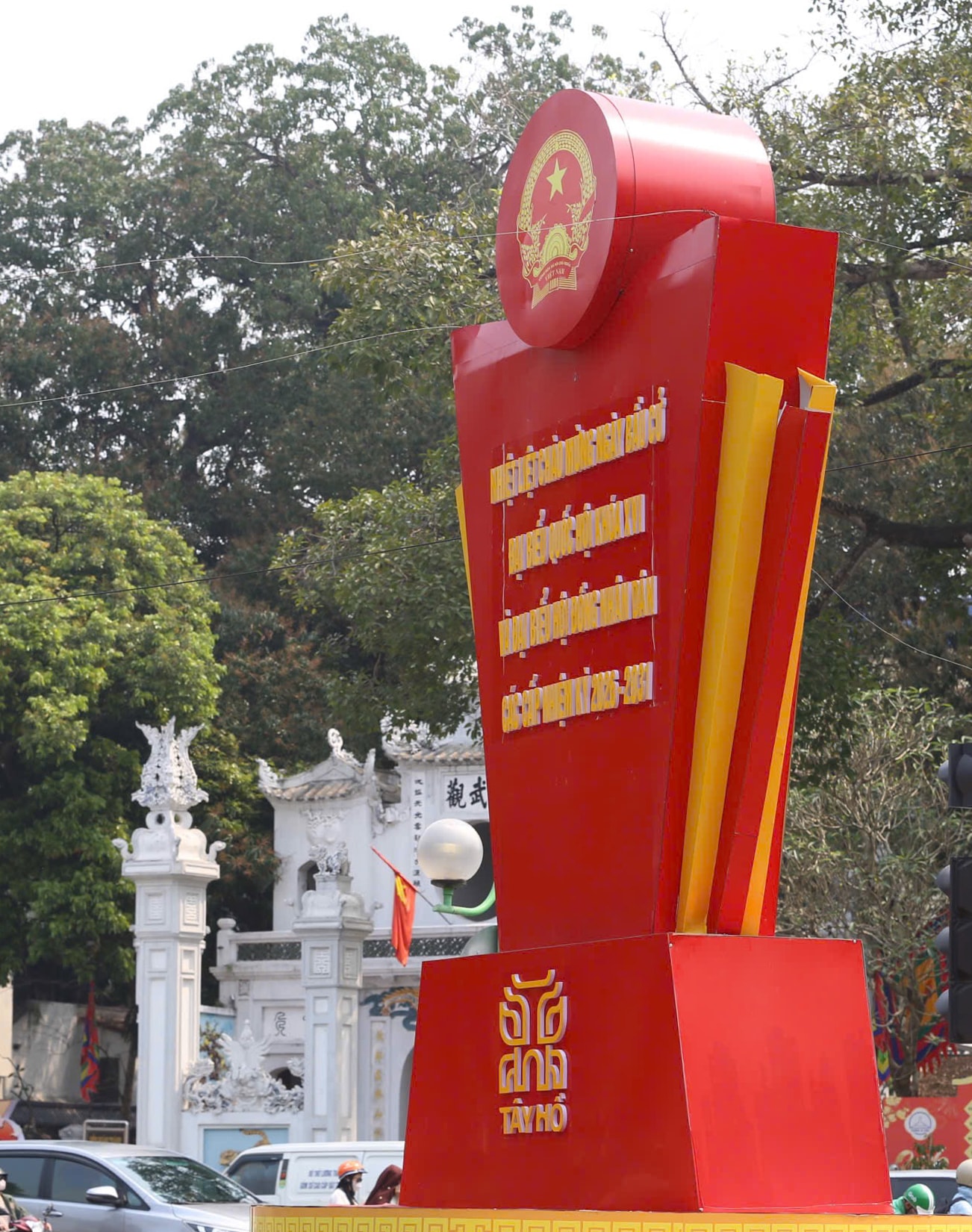 Nhiều pano, khẩu hiệu tuyên truyền về bầu cử được bố trí nổi bật trên các tuyến phố, góp phần lan tỏa thông tin, nâng cao nhận thức của người dân về ngày hội lớn của toàn dân. Ảnh: Ngọc Tú