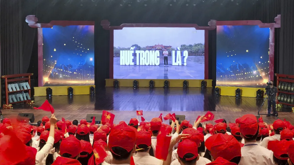 Sáng 26-10, hàng ngàn cổ động viên đã lấp đầy Nhà hát sông Hương (TP Huế), tạo nên không khí cuồng nhiệt để tiếp lửa cho Lê Quang Duy Khoa (học sinh Trường THPT Quốc học Huế) tại điểm cầu Chung kết Đường lên đỉnh Olympia.