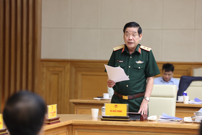 Trung tướng Nguyễn Văn Gấu, Thứ trưởng Bộ Quốc phòng, trình bày tham luận tại hội nghị. Ảnh: TTXVN