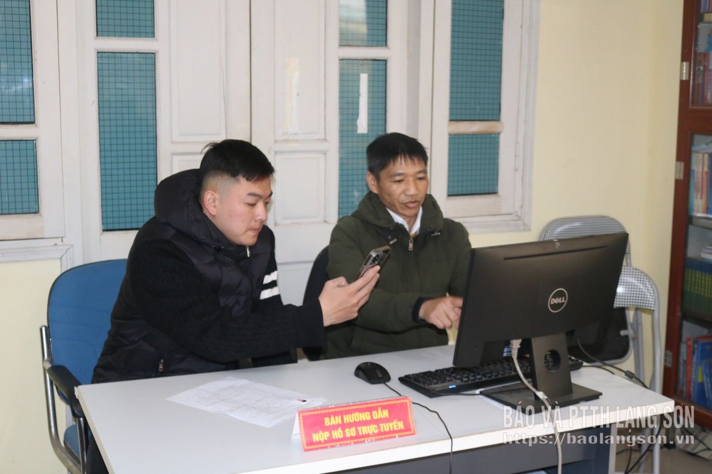 Công chức Trung tâm Phục vụ hành chính công phường Kỳ Lừa hướng dẫn người dân nộp hồ sơ trực tuyến