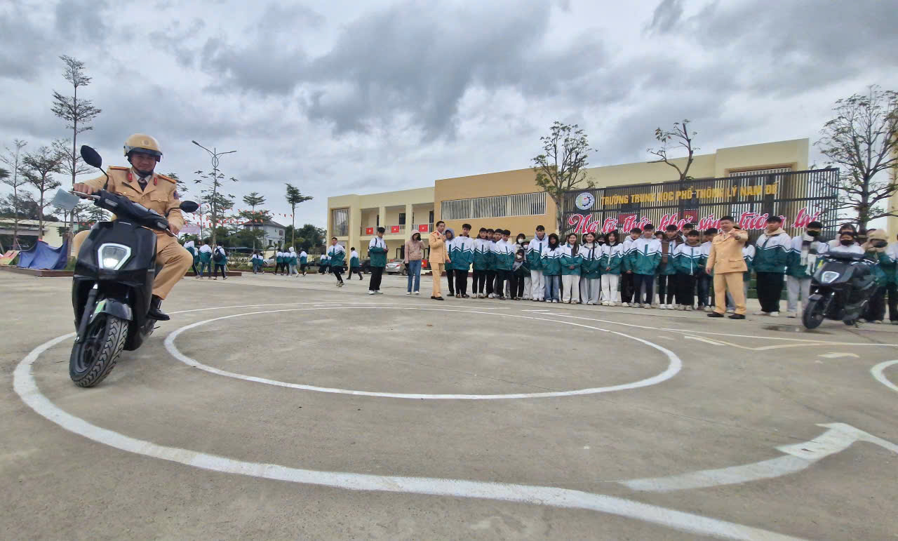 Cô Trần Thị Hương Lam, Hiệu trưởng Trường THPT Lý Nam Đế cho biết: Nhà trường hiện có 24 lớp với 1.074 học sinh, 100% các em học sinh đều tham gia chuyên đề hướng dẫn kỹ năng lái xe gắn máy an toàn của Phòng CSGT.