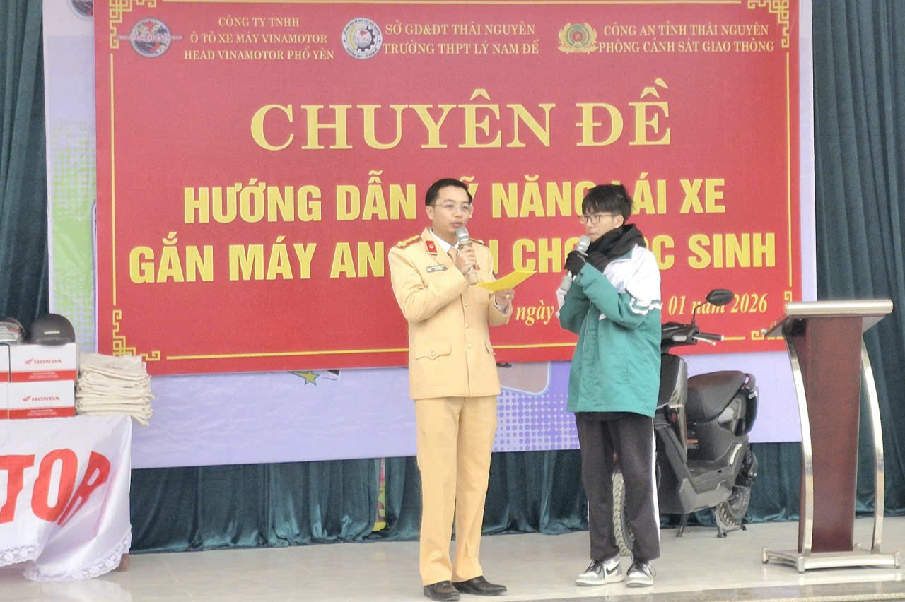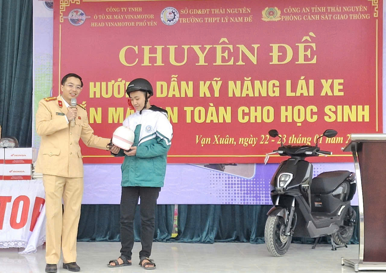Ngày 22/1, tại Trường THPT Lý Nam Đế, Phòng CSGT Công an tỉnh Thái Nguyên phối hợp tổ chức chuyên đề hướng dẫn kỹ năng lái xe gắn máy an toàn cho học sinh.