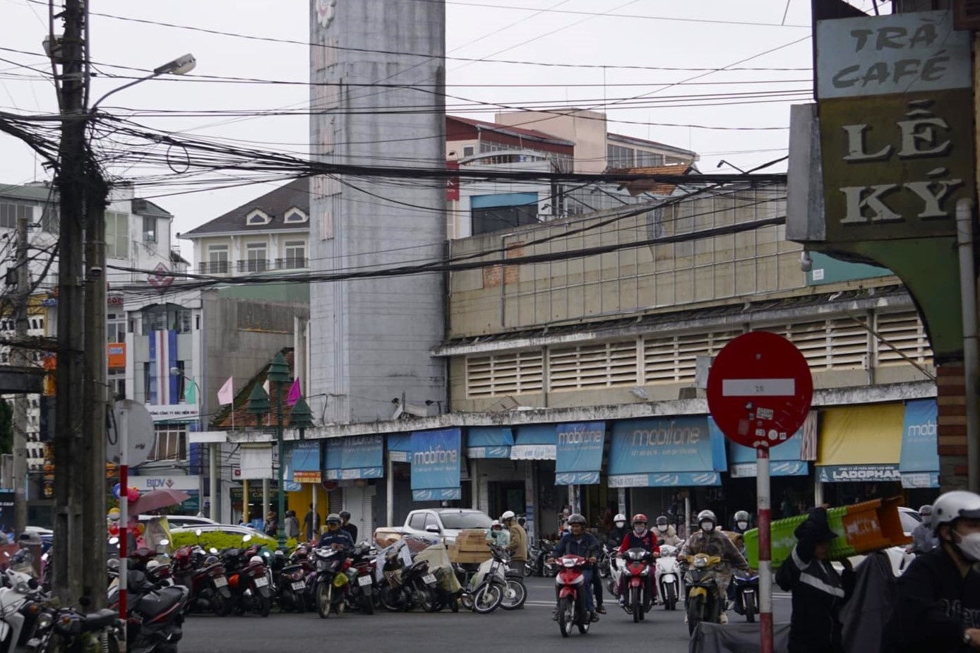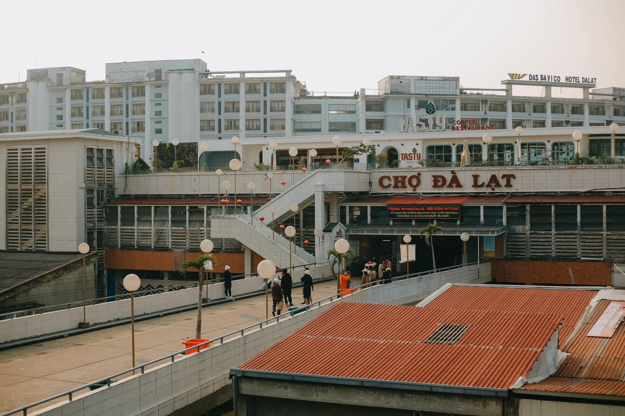 Khoảng năm 1960, kiến trúc sư Ngô Viết Thụ đã thiết kế một cầu nối liền khu Hòa Bình đến lầu 2 của chợ Đà Lạt, sau này có thêm cầu thang dẫn lên tầng thượng. Hiện tại, chiếc cầu này trở thành điểm check-in "Hong Kong bên hông chợ Đà Lạt". Song, năm 2023, hai bên thành cầu được trang bị thêm khung sắt, chậu hoa, phần nào che khuất view đẹp phía sau khiến du khách tiếc nuối. Ảnh: Wilbur E. Garrett, Trần Minh Hiếu.