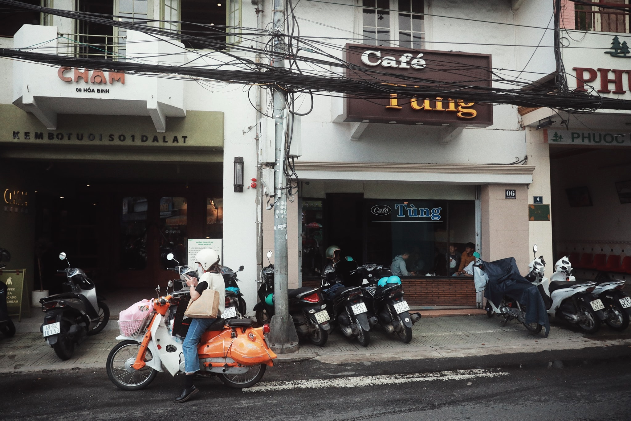 Cà phê Tùng nằm tại khu Hòa Bình (phường Xuân Hương - Đà Lạt) được mở bởi ông Trần Đình Tùng, thuộc nhóm người Hà Nội vào Đà Lạt khoảng năm 1940. Các nghệ sĩ ưu tú của Đà Lạt và miền Nam thường tụ họp tại đây. Từ năm 2020, quán cà phê này trở thành điểm uống cà phê, ăn sữa chua quen thuộc của du khách. Không gian gần như nguyên vẹn từ ghế da đến bức tranh trên tường. Song, mặt tiền đã thay bằng bảng hiệu chữ nổi hiện đại. Ảnh: Cà phê Tùng, Đà Lạt Review.