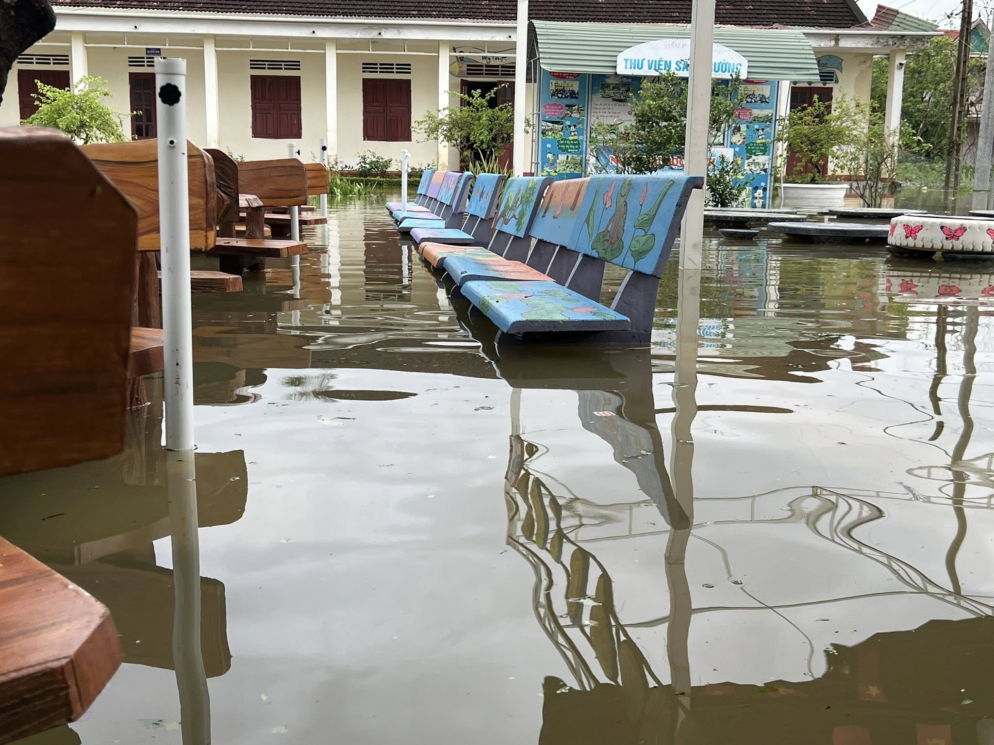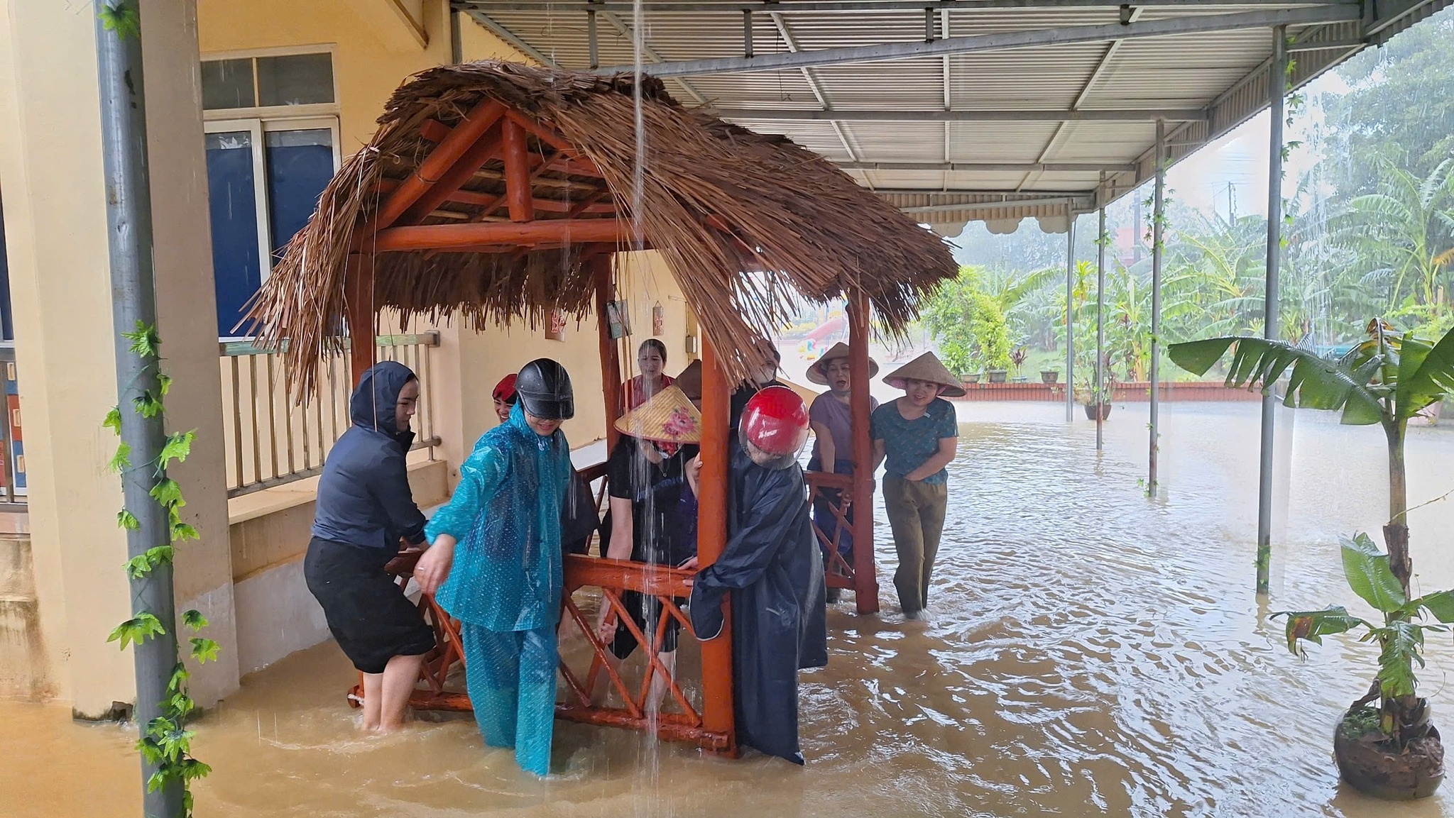 Trường Tiểu học Hòa Hiếu 1 (Nghệ An) cho biết hiện nay, khuôn viên trường vẫn còn ngập nước, đồng thời nhiều gia đình học sinh chịu ảnh hưởng do bão nên chưa thể đến trường. Vì vậy, ngày 1/10, học sinh toàn trường tiếp tục nghỉ học để đảm bảo an toàn. Thời gian quay lại học tập sẽ được nhà trường cập nhật và thông báo sớm nhất khi điều kiện cho phép. Ảnh: FBNT.