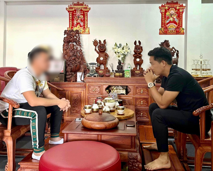 Để chiều theo đam mê thưởng trà, doanh nhân này đã dành riêng một không gian hoành tráng trong biệt phủ rộng 4.000m2 làm phòng trà. Bên trong bố trí đủ loại trà quý, nhiều món dụng cụ pha chế được đặt mua từ nước ngoài, cùng một chiếc bàn lớn được thiết kế riêng cho việc pha trà. Toàn bộ kệ trưng bày kéo dài sát tường, cao tận trần, chất đầy các bình, hộp, ấm chén và nguyên liệu hiếm.