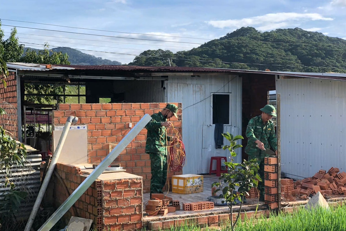 Cán bộ, chiến sĩ hỗ trợ xây nhà cho gia đình chị Nguyễn Thị Trúc Ly, thôn Quảng Lạc, xã D'ran, tỉnh Lâm Đồng