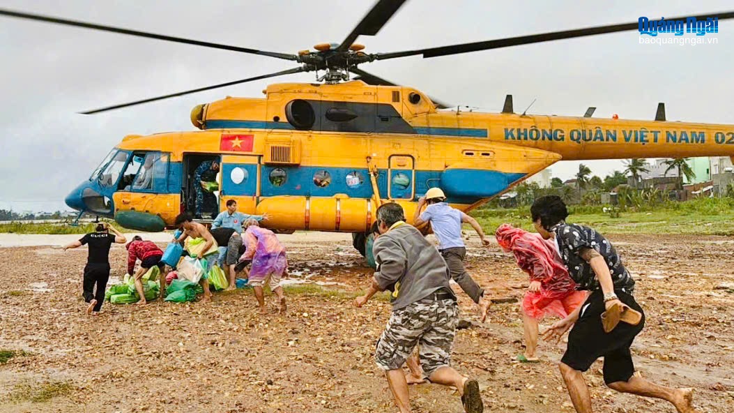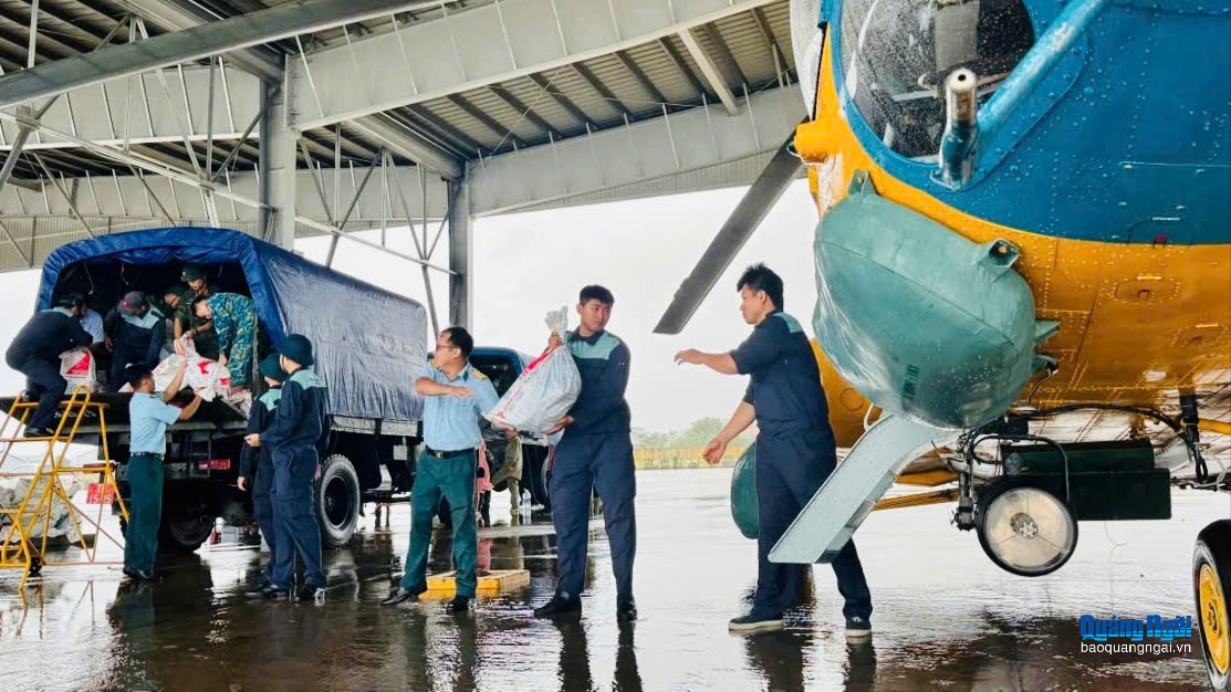 Trước đó, các máy bay trực thăng quân sự của Trung đoàn Không quân 917 cũng đã tiếp nhận hơn 2 tấn hàng của Quân chủng Phòng không - Không quân, 700 phần quà thiết yếu của các tỉnh chuyển thả hàng cứu trợ ở các địa bàn ngập lụt lâu ngày, bị chia cắt và đang khó khăn về lương thực, thực phẩm ở tỉnh Khánh Hòa và khu vực phía đông tỉnh Đắk Lắk.