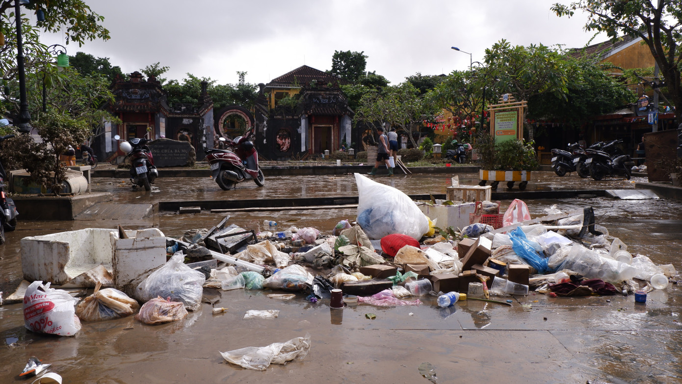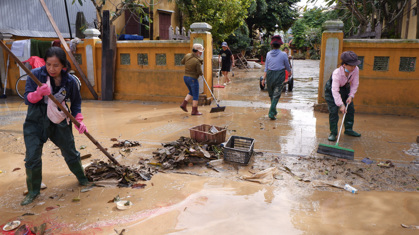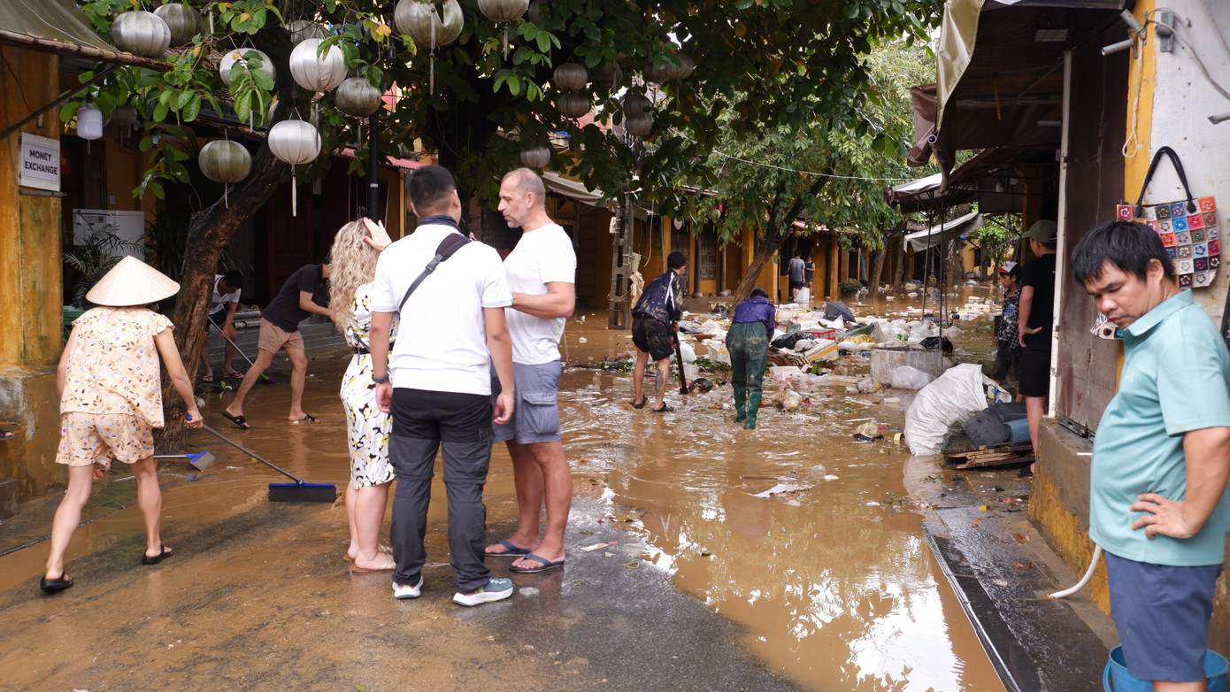 Sáng ngày 31/10, lũ trên sông Hoài, phố cổ Hội An đã rút, người dân và lực lượng chức năng bắt tay vào việc dọn vệ sinh môi trường. Nước lũ rút, cũng là lúc phố cổ Hội An ngổn ngang trong rác và bùn đất.