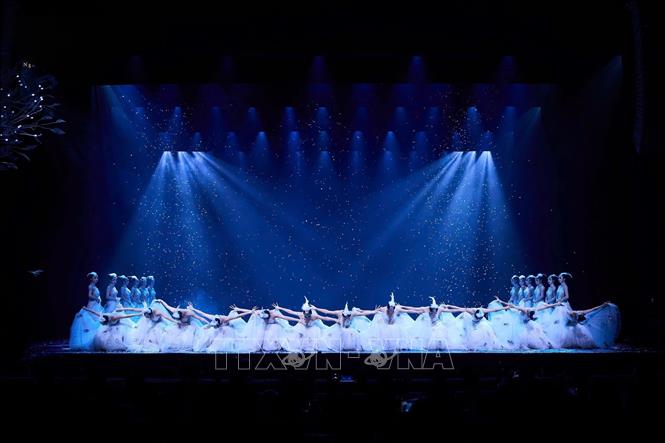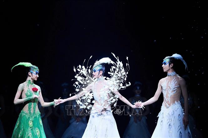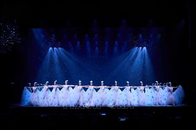 Vũ kịch “Khổng Tước” đã chinh phục khán giả Thủ đô bằng vẻ đẹp của ngôn ngữ hình thể, mỹ học phương Đông và chiều sâu triết lý về sự sống. Ảnh: TTXVN phát