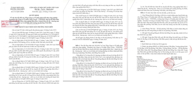 Quyết định của UBND phường Trấn Biên chỉ đạo Phòng Kinh tế, Hạ tầng và Đô thị có trách nhiệm giao Quyết định đến Tổng Công ty Cổ phần Phát triển khu công nghiệp - Sonadezi và Công ty Cổ phần Thép Vicasa.