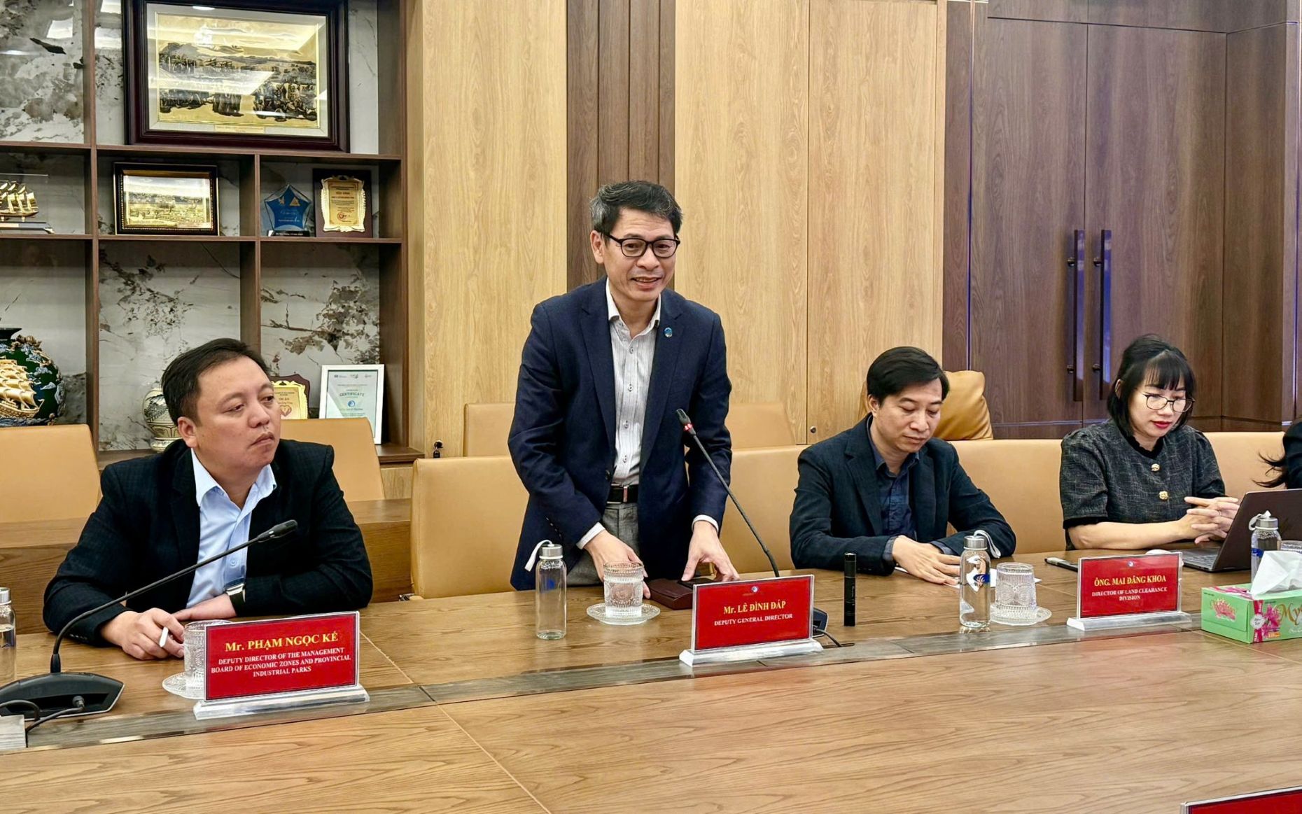 Tại buổi làm việc, ông Lê Đình Đáp, Phó tổng giám đốc Công ty cổ phần Green i-Park bày tỏ sự trân trọng khi tiếp đón đoàn công tác hãng Thông tấn Campuchia (AKP) đến thăm và ghi nhận hoạt động của KCN. Ông nhấn mạnh, sự quan tâm và đồng hành của các cơ quan báo chí là nguồn động lực quan trọng giúp KCN Liên Hà Thái từng bước hoàn thiện cơ sở hạ tầng, nâng cao chất lượng dịch vụ và mở rộng quy mô hoạt động.
