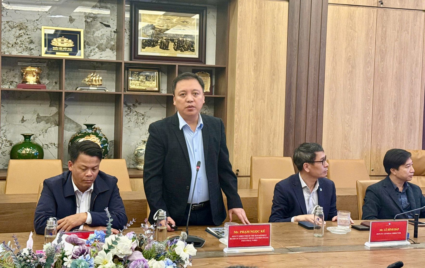 Ông Phạm Ngọc Kế, Phó trưởng Ban quản lý Khu kinh tế Thái Bình phát biểu tại buổi làm việc.
