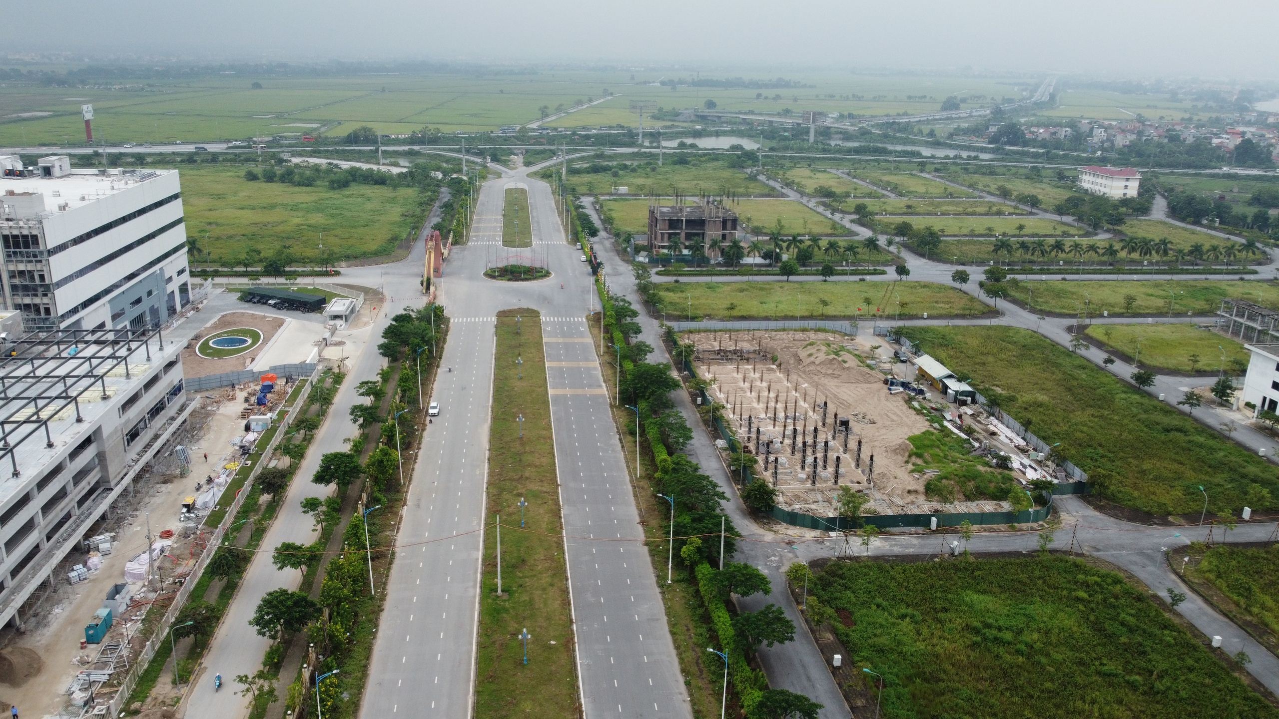 Khu A, B dự án Khu công nghiệp hỗ trợ Nam Hà Nội được ngăn cách bởi trục đường ở giữa.