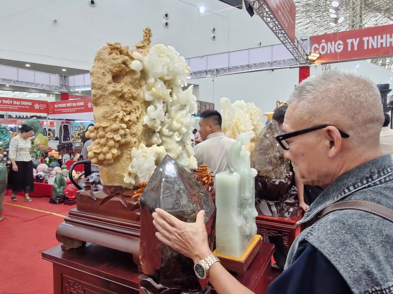 Anh Lê Tiến Đạt (Cầu Giấy, Hà Nội) chia sẻ: “Tôi đi nhiều hội chợ nhưng chưa nơi nào có không gian đá quý quy mô và phong phú như vậy. Nhìn những khối ngọc trong suốt, ánh sáng hắt ra lấp lánh khiến ai cũng muốn dừng lại ngắm thật lâu”. Còn anh Lê Đức Thanh (du khách đến từ Thanh Hóa) cho biết: “Tôi không có ý định mua, nhưng vẫn thấy đáng để đến chiêm ngưỡng. Mỗi tác phẩm như một bức tranh kể chuyện - vừa nghệ thuật vừa mang hơi thở tâm linh”.