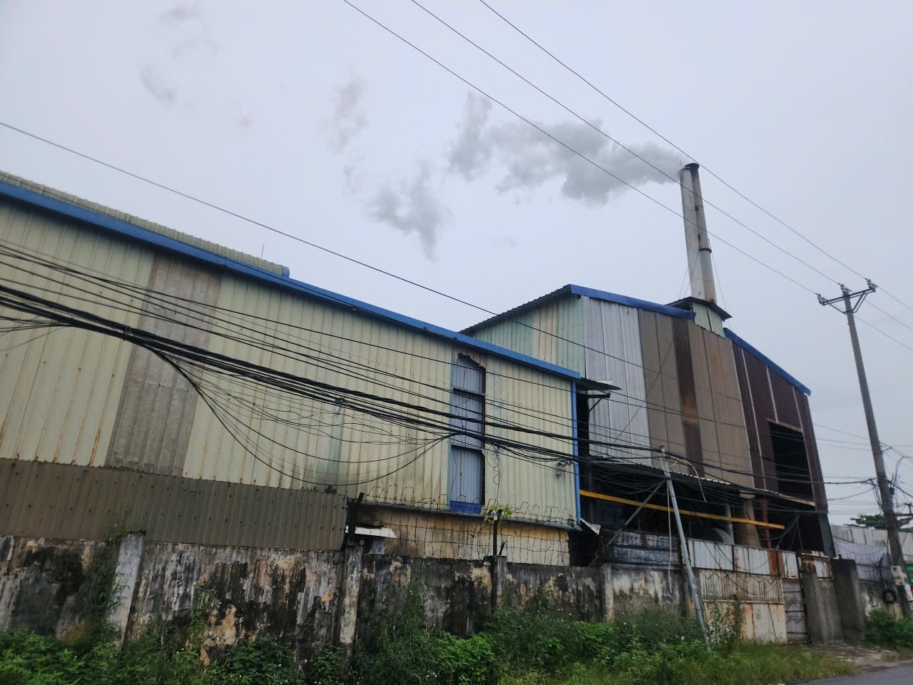 Ống khói từ nhà xưởng liên tục xả ra môi trường, lan tỏa mùi khét nồng độc hại vào khu dân cư. Ảnh: DN