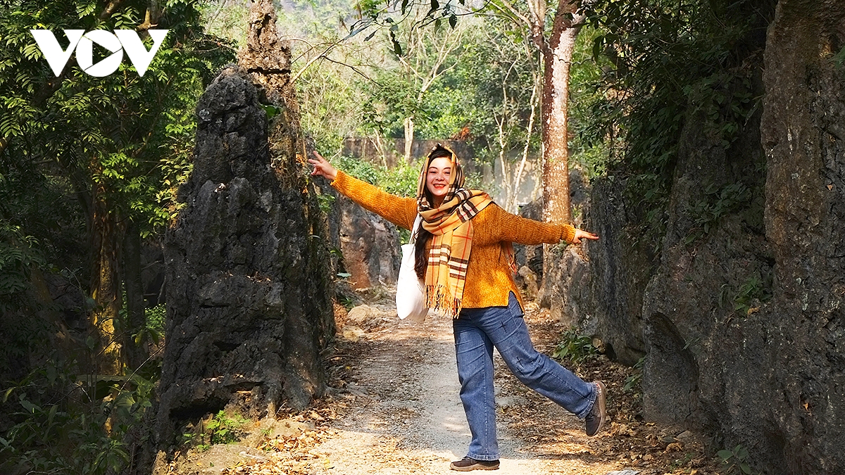 Rất nhiều vườn cây ăn trái như cam, bưởi... xen lẫn rừng mơ trên tuyến đường trekking chùa và hang động Tuyết Sơn, động Người Xưa hấp dẫn du khách check-in, thưởng thức trái cây tươi ngon theo mùa.