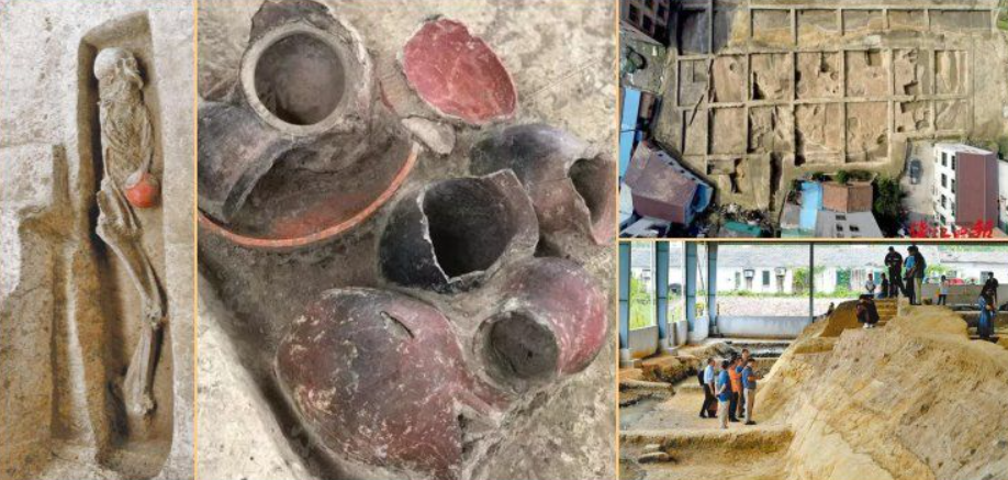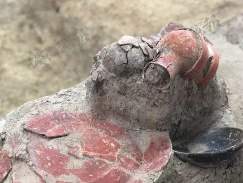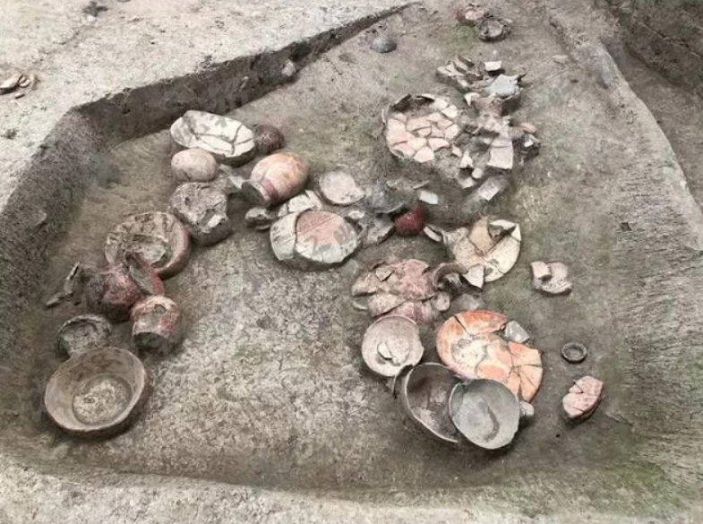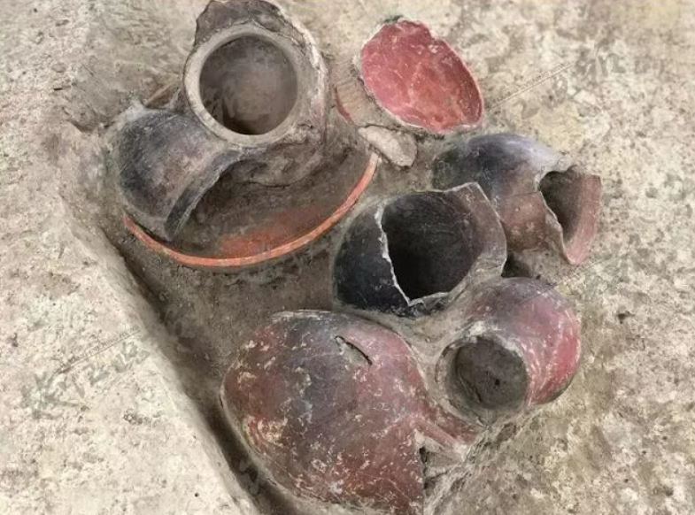 Chúng bao gồm cả bình gốm màu đỏ và trắng, một số còn nguyên vẹn và một số khác đã bị vỡ vụn. Ảnh: @Viện Di tích văn hóa và Khảo cổ học Chiết Giang.