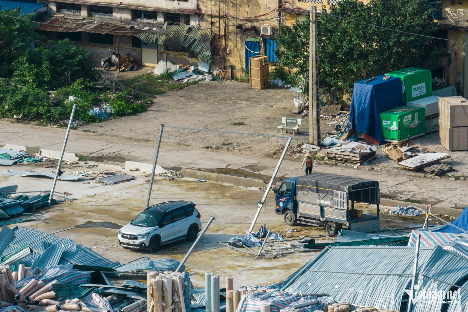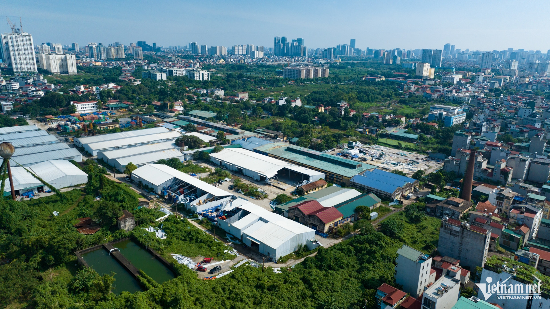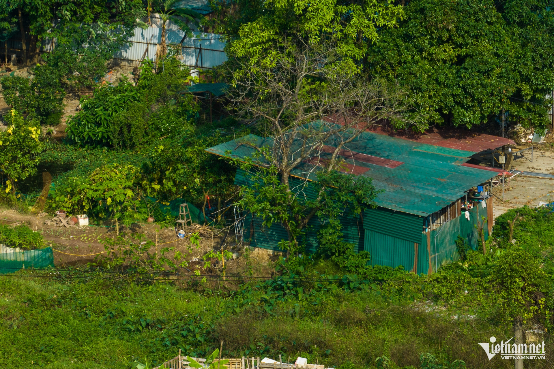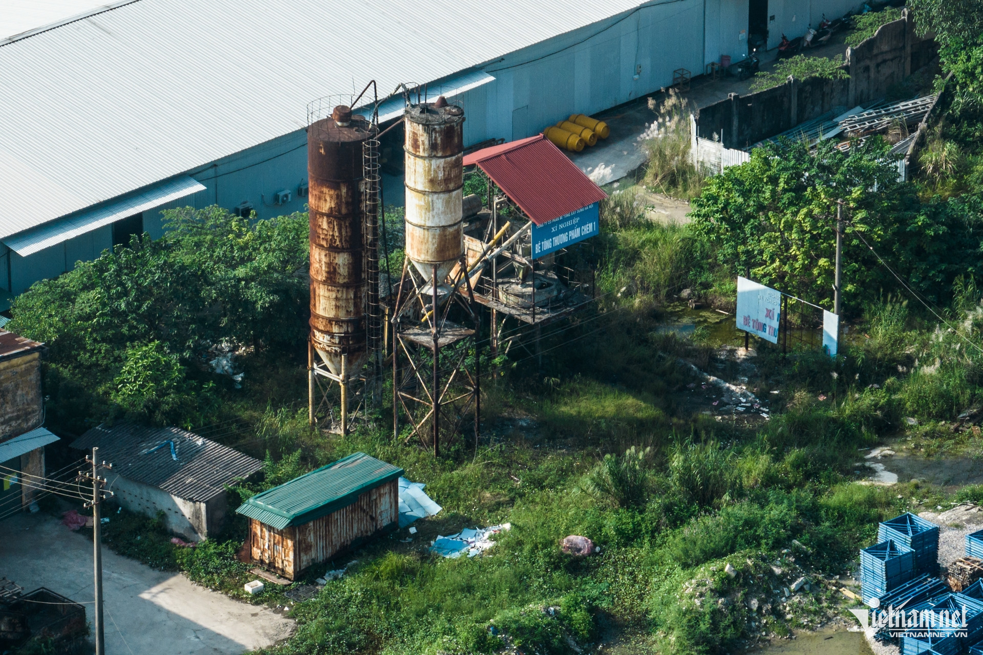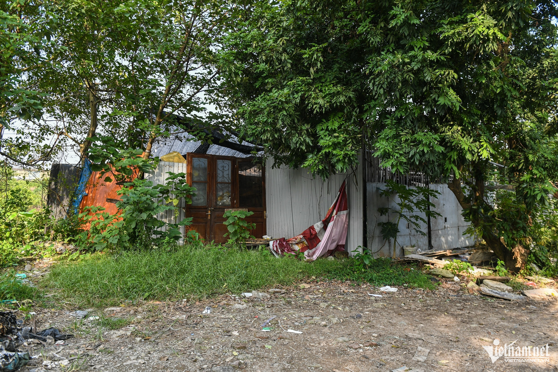 Do chưa được triển khai, một phần diện tích khu đất được sử dụng tạm thời làm kho bãi, nhà xưởng. Trong hình, nhà xưởng, kho bãi tạm bợ đã được dựng lên.
