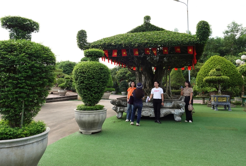 Bước qua cánh cổng Dũng Tân, du khách như bước vào một “bảo tàng sống” của nghệ thuật cây cảnh. Hàng nghìn cây bonsai được tạo dáng cầu kỳ, sắp đặt hài hòa giữa non bộ, hồ nước, hoa cỏ và lối đi lát đá cong cong, gợi cảm giác thanh thoát và thiền định. Nhiều tác phẩm trong số đó từng giành giải cao tại Triển lãm Bonsai Châu Á - Thái Bình Dương BCI, trong đó có cây Tùng La Hán đạt Huy chương Vàng tại Triển lãm Bonsai quốc tế Đài Loan năm 2016.