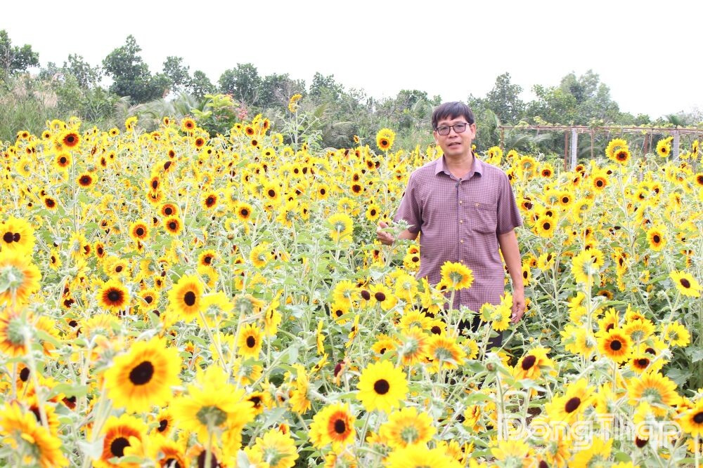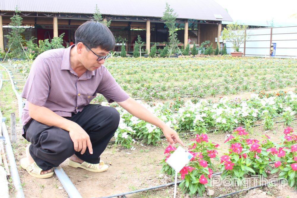 Ông Đoàn Hữu Nhiều phấn khởi với thành quả trồng được các giống hoa mới, góp phần nâng cao giá trị hoa - kiểng của tỉnh Đồng Tháp.