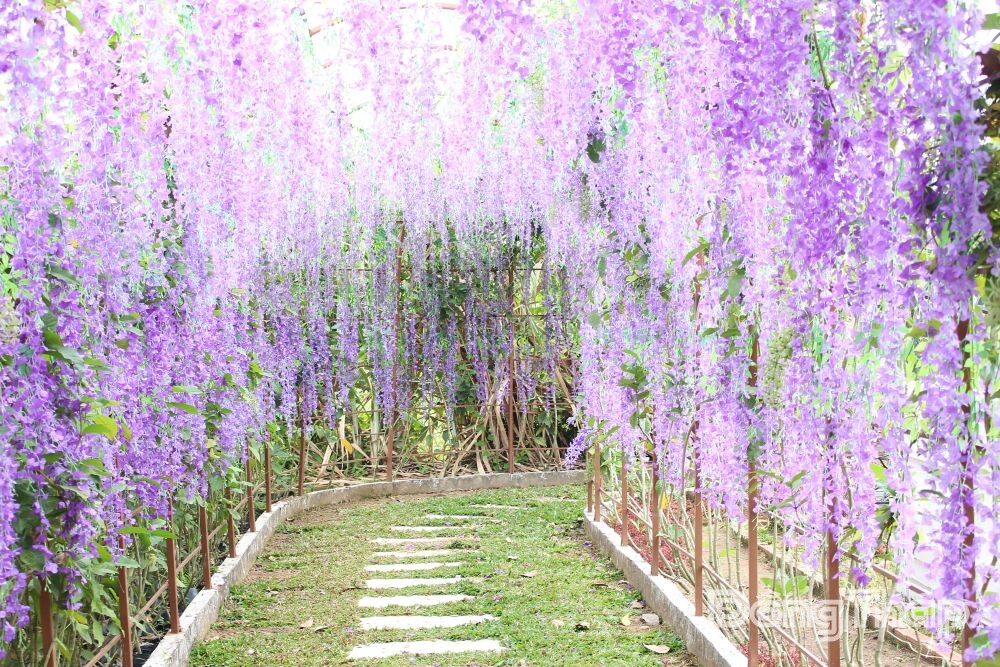 Với diện tích khoảng 1.500 m2, ông Đoàn Hữu Nhiều trồng 100 giống hoa mới như: Lavender, phong phong, mõm sói, ngọc thảo, cúc huân chương...
